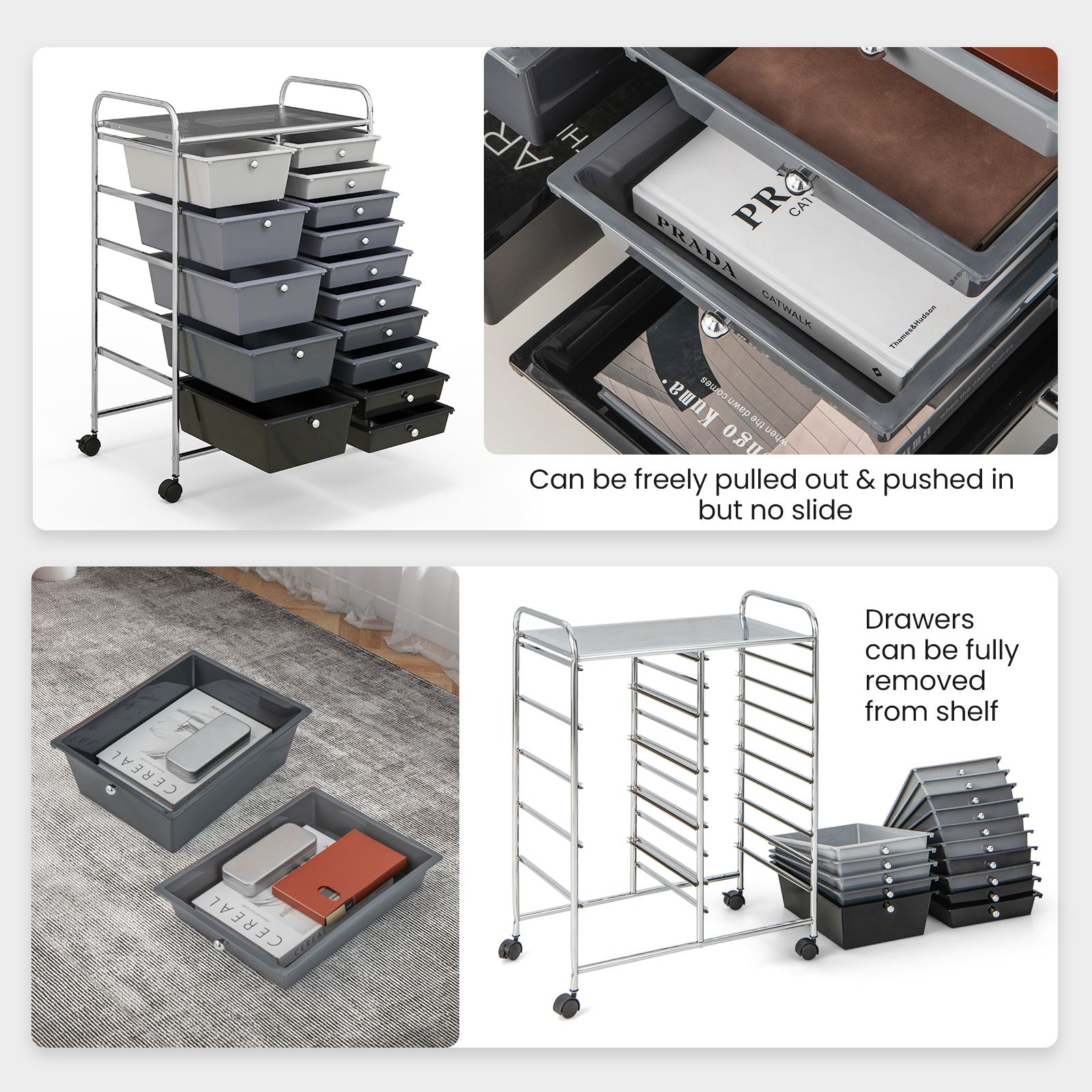 Storage Trolley - 15 Drawer Rolling Storage Cart with 4 Wheels for Beauty Salon-Dark Grey
