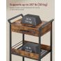 Organize your space with the VASAGLE 4-Tier Rolling Storage Trolley. This stylish cart, in rustic brown and ink black, features a convenient tabletop, easy-grip handles, and lockable castors for effortless mobility. With a top drawer and mesh shelves, it's perfect for kitchens, bathrooms, or bedrooms, offering versatile storage and a touch of rustic charm.
