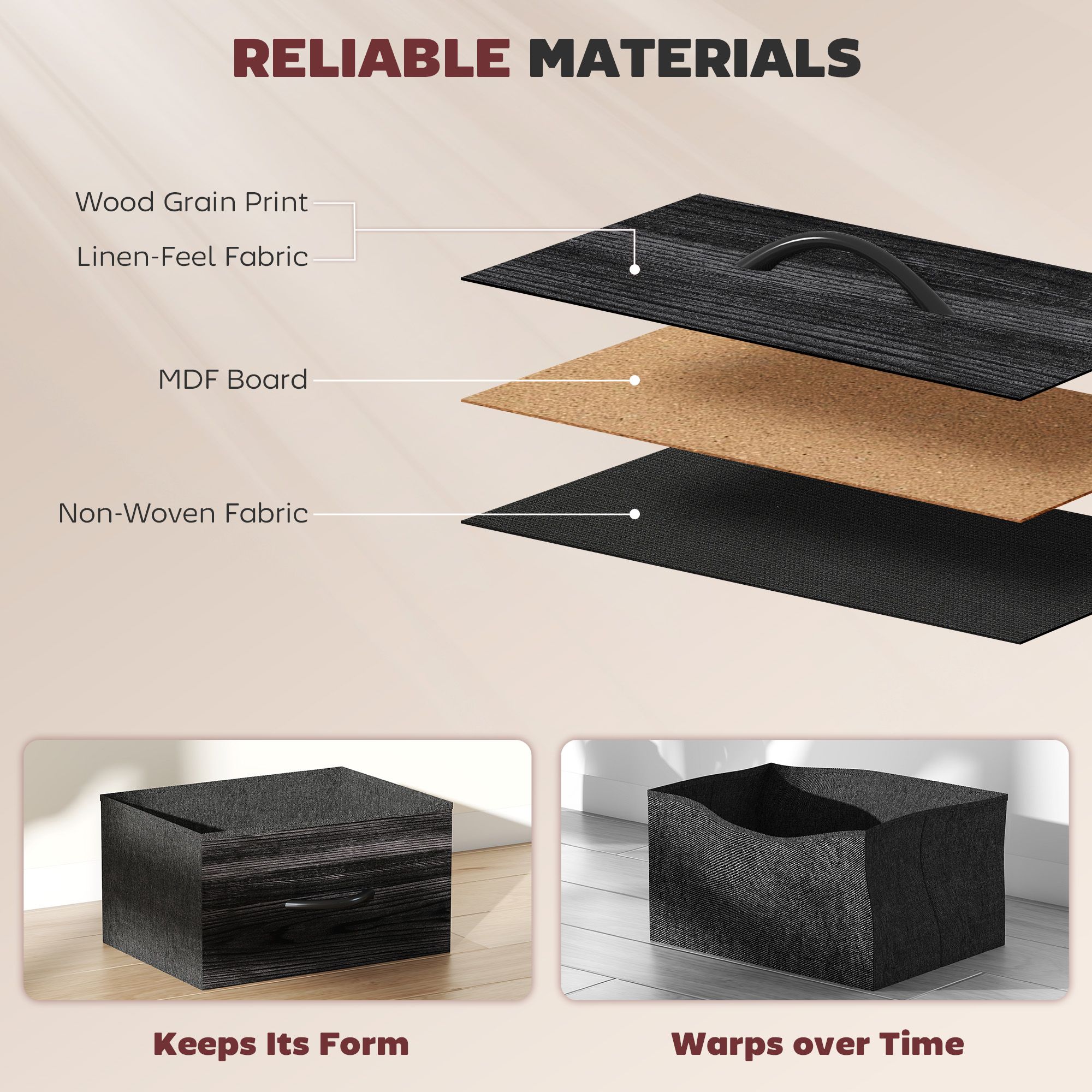 STOWLY Black Chest of Drawers - Medium-sized, 6 Drawers, Double, Fabric Drawers