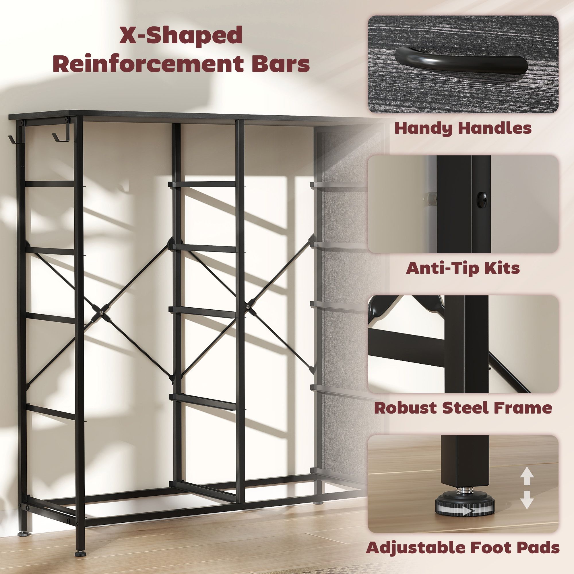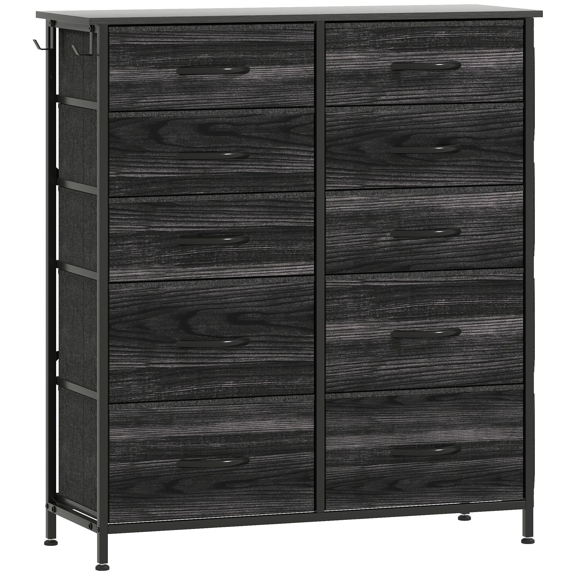 STOWLY Black Chest of Drawers - Medium-sized, 8 Drawers, Double, Fabric Drawers