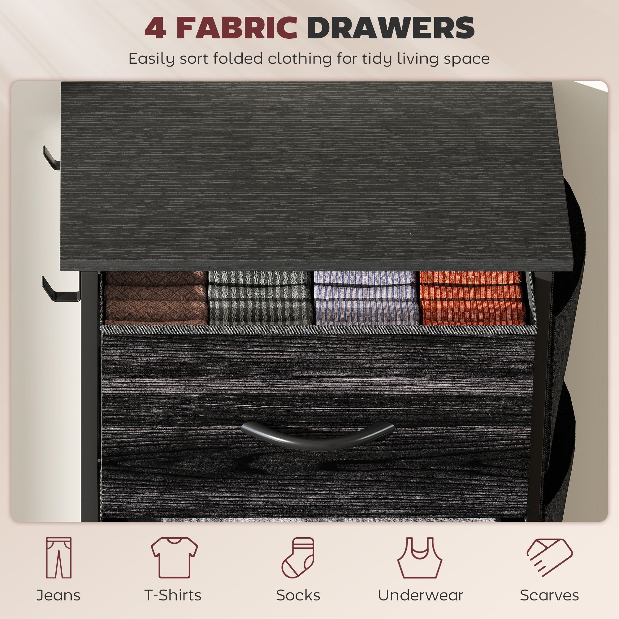 STOWLY Black Chest of Drawers - Tallboy, Medium-sized, 4 Drawers, Fabric Drawers