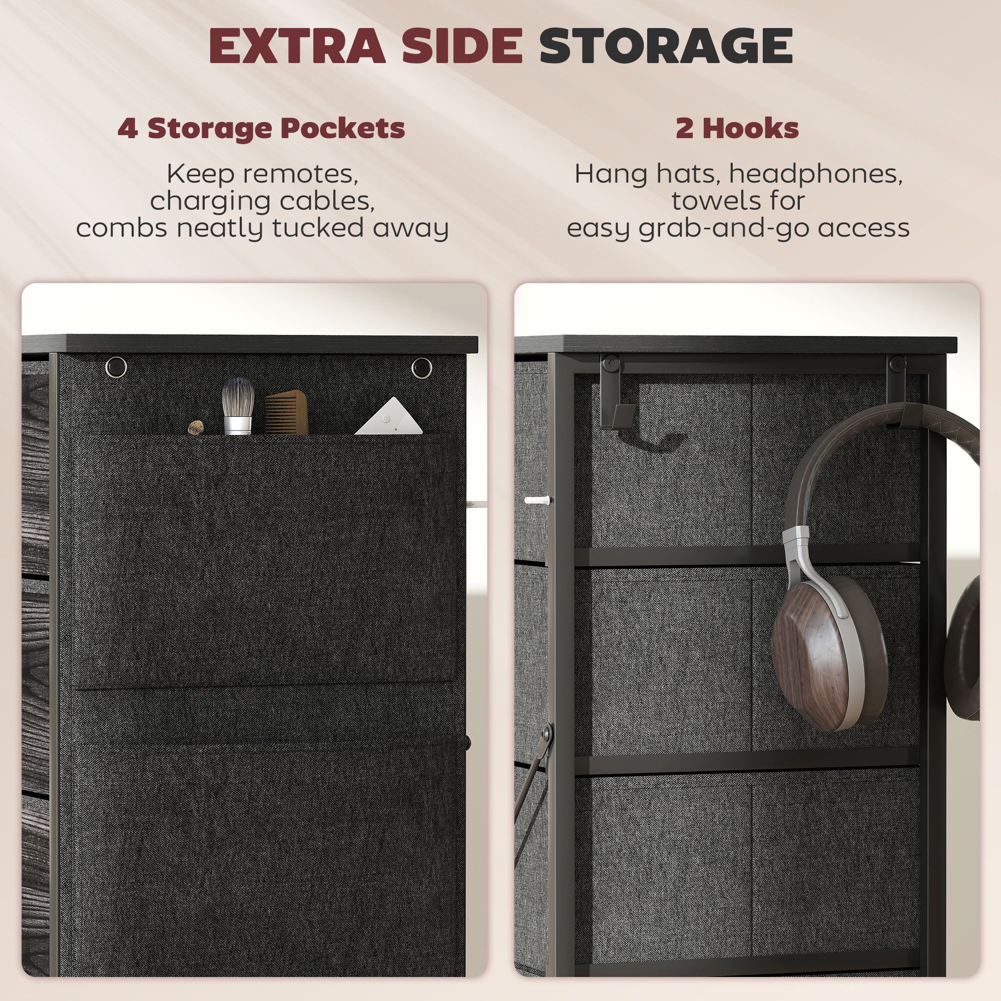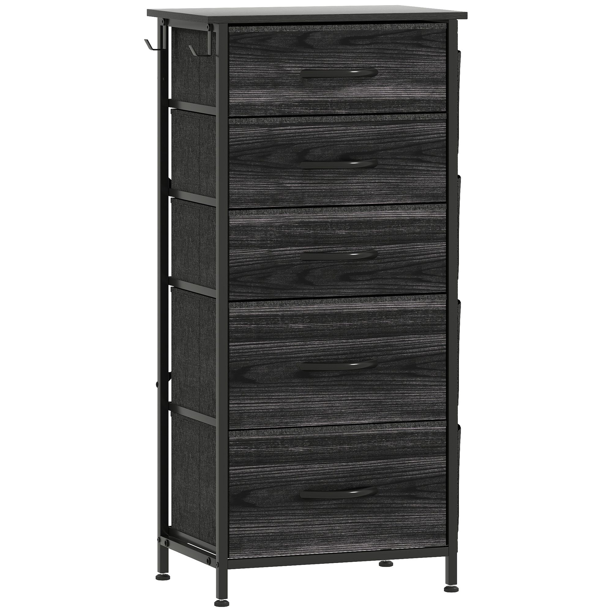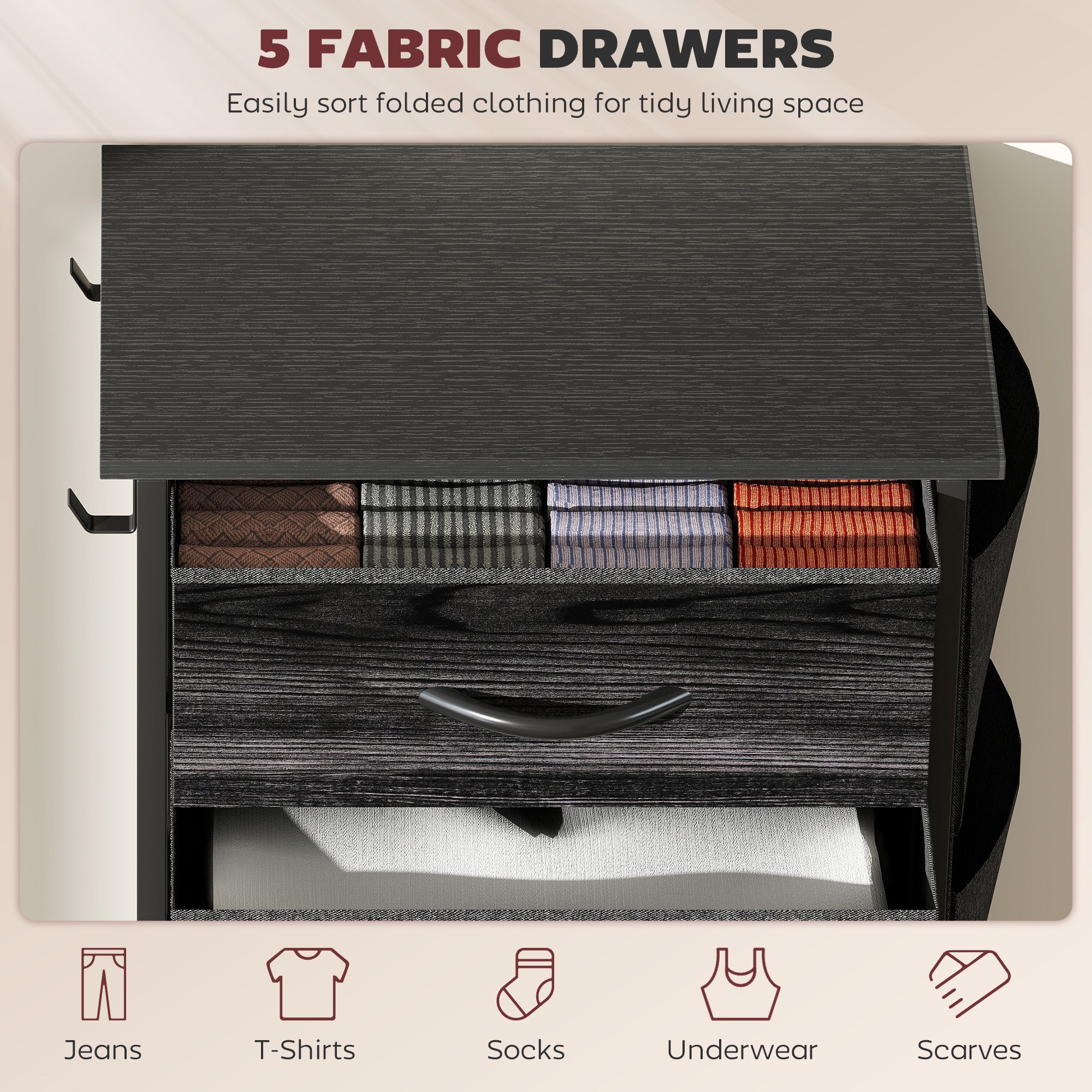 STOWLY Black Chest of Drawers - Tallboy, Medium-sized, 5 Drawers, Fabric Drawers
