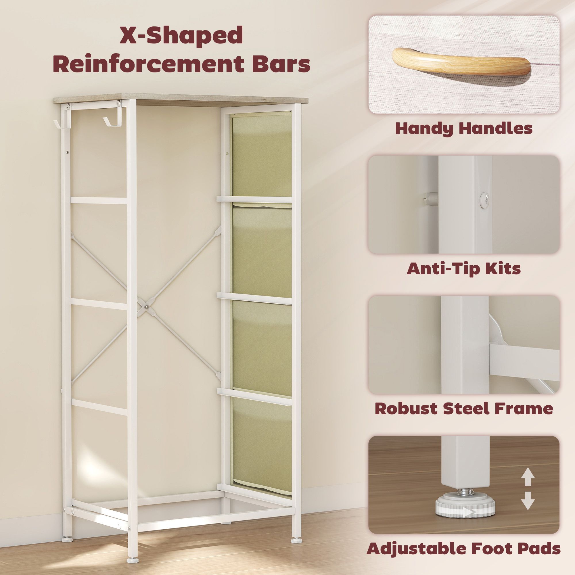 STOWLY Grey Chest of Drawers - Tallboy, Medium-sized, 4 Drawers, Fabric Drawers