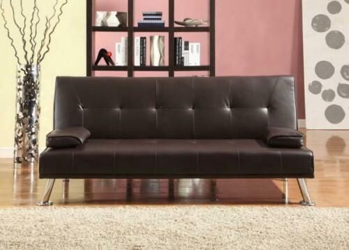 This Sofa Bed is a stunning piece of furniture and would be a great new addition to your home. It can be used in a bedroom or in the living room, bringing a contemporary touch to the room. This sofa uses the ingenious, faultless 'click-clack' mechanism, allowing you to have the sofa positioned in one of 3 ways - Sitting, Reclining or Sleeping. Converting in seconds. This Italian Style Sofa bed is stylish and highly functional. Made of high quality faux leather, this multi-functional sofa bed offers great durability and stain resistant properties. The polished chrome legs gives it that extra addition of designer glamour.