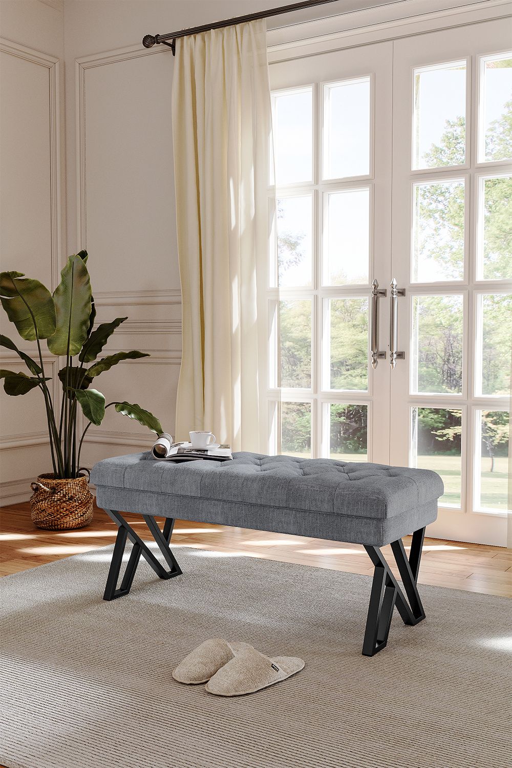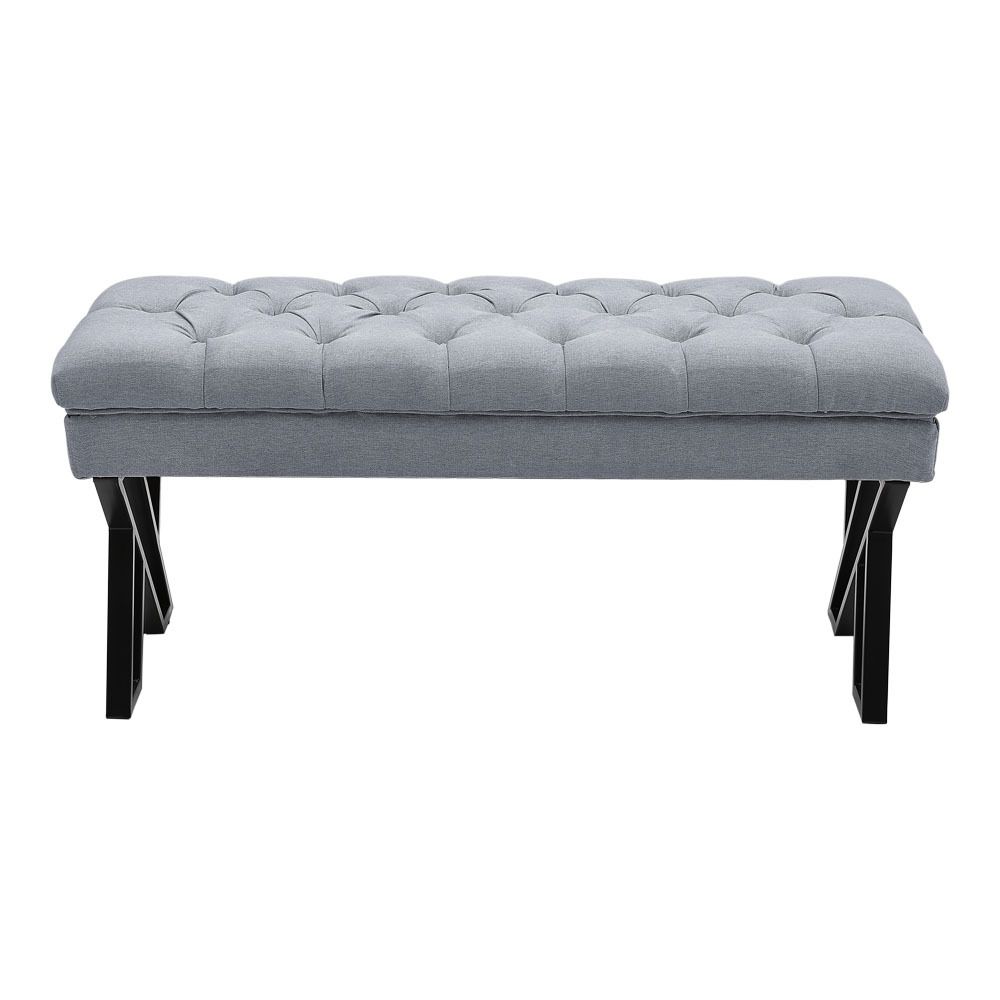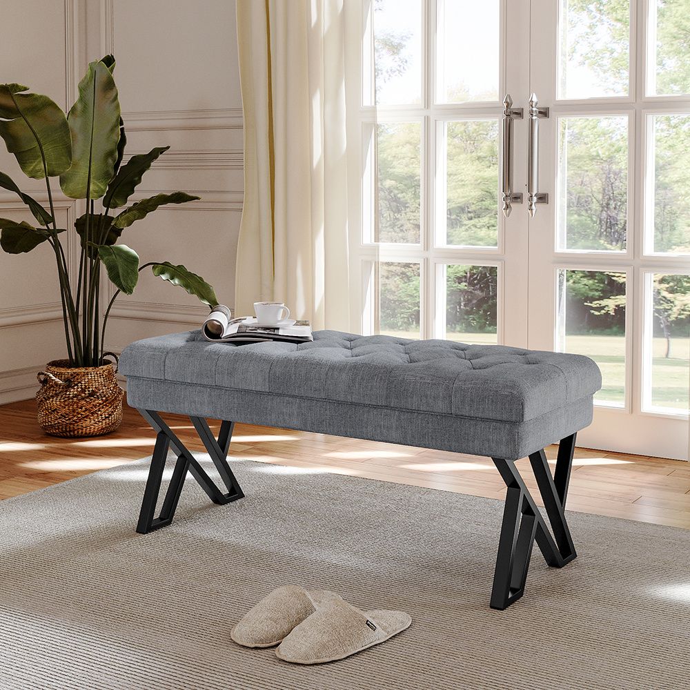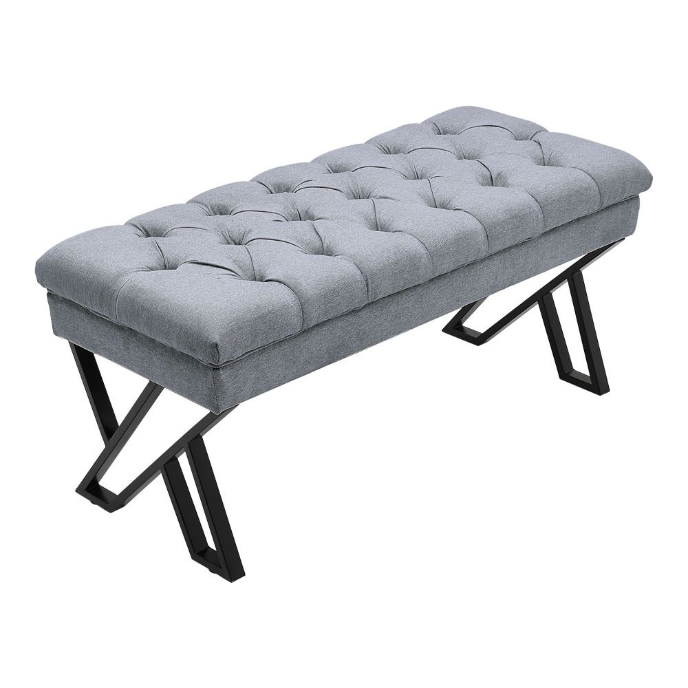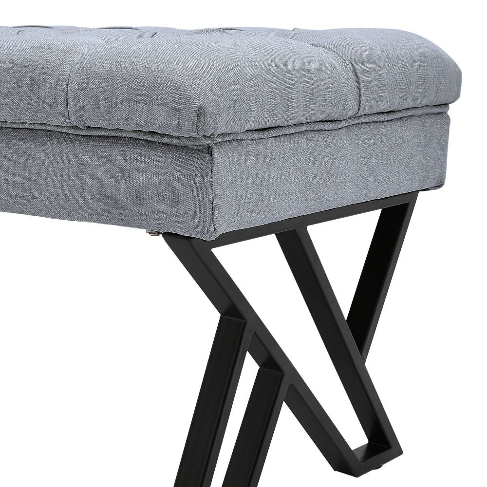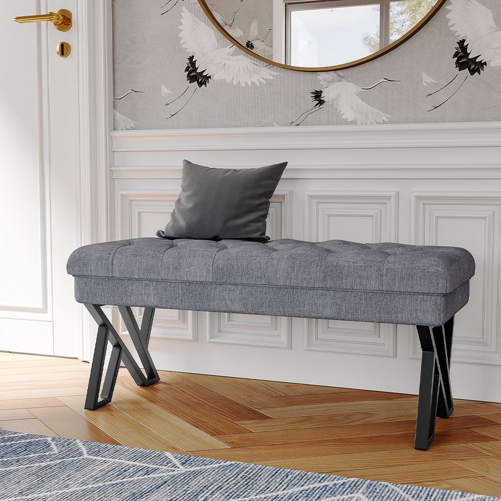 Stylish and Versatile Mid Century Metal Grey Upholstered Bench 43.5x104x46cm