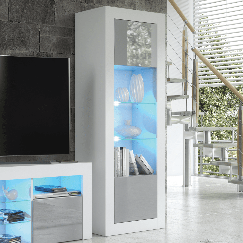 Stylish Cabinet Sideboard and Display Unit with Ample Storage and Free LED Lighting 170cm - White and Grey