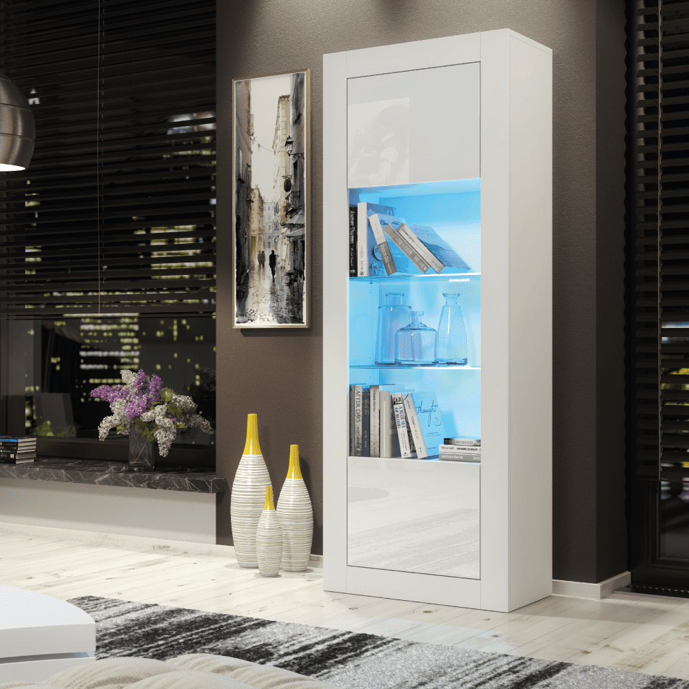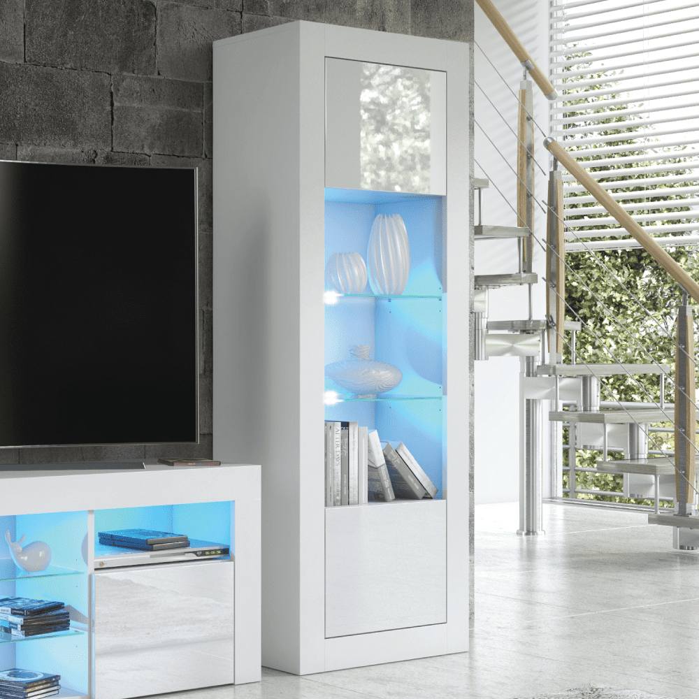 Stylish Cabinet Sideboard and Display Unit with Ample Storage and Free LED Lighting 170cm - White
