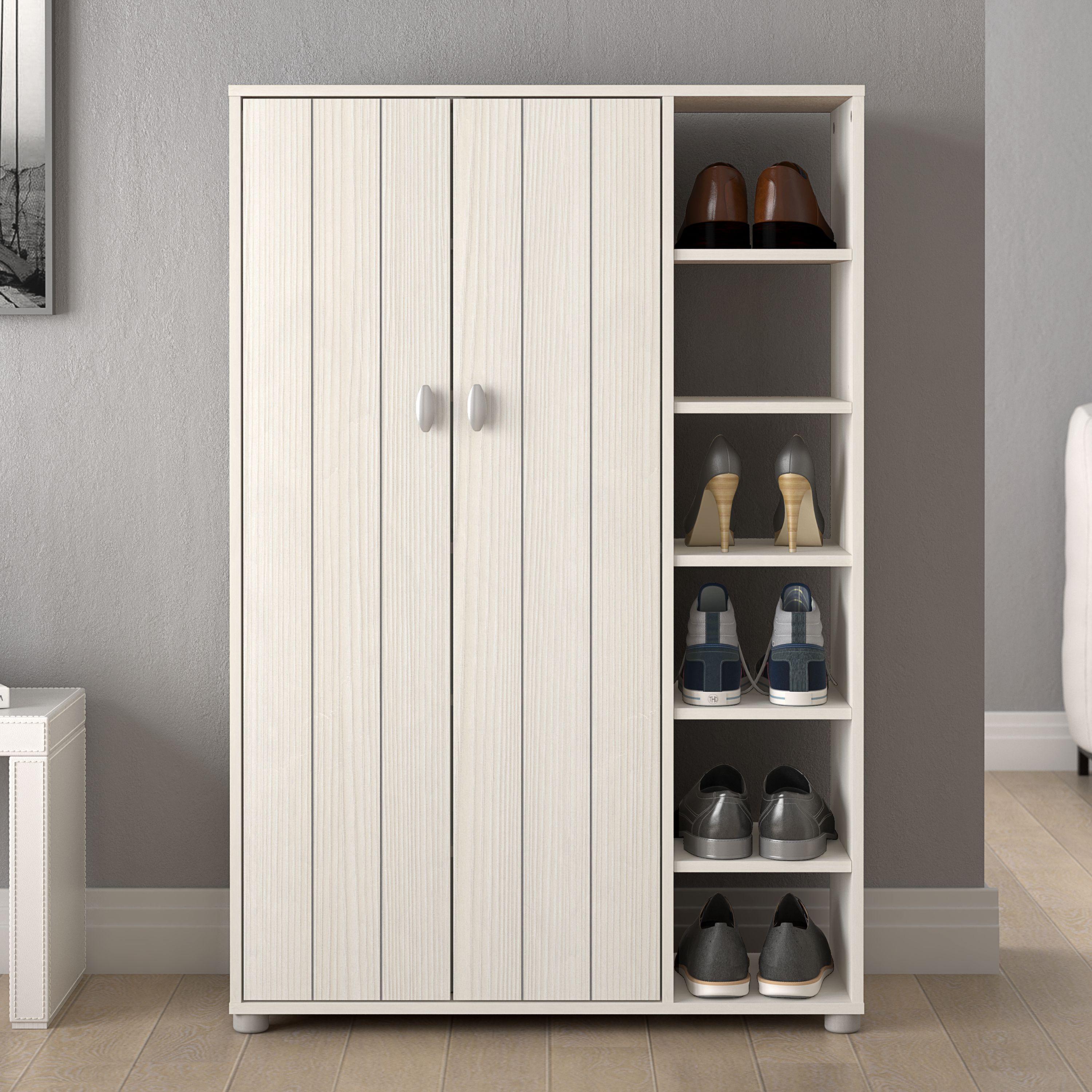 Stylish Design 2 Doors with Open Shelves Shoe Cabinet - White
