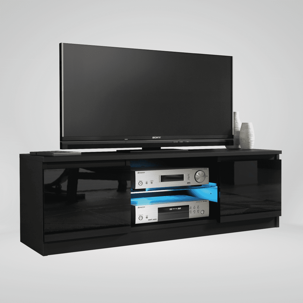 Stylish TV Unit and Sideboard Cabinet with Ample Storage and Free LED Lighting 120cm - Black