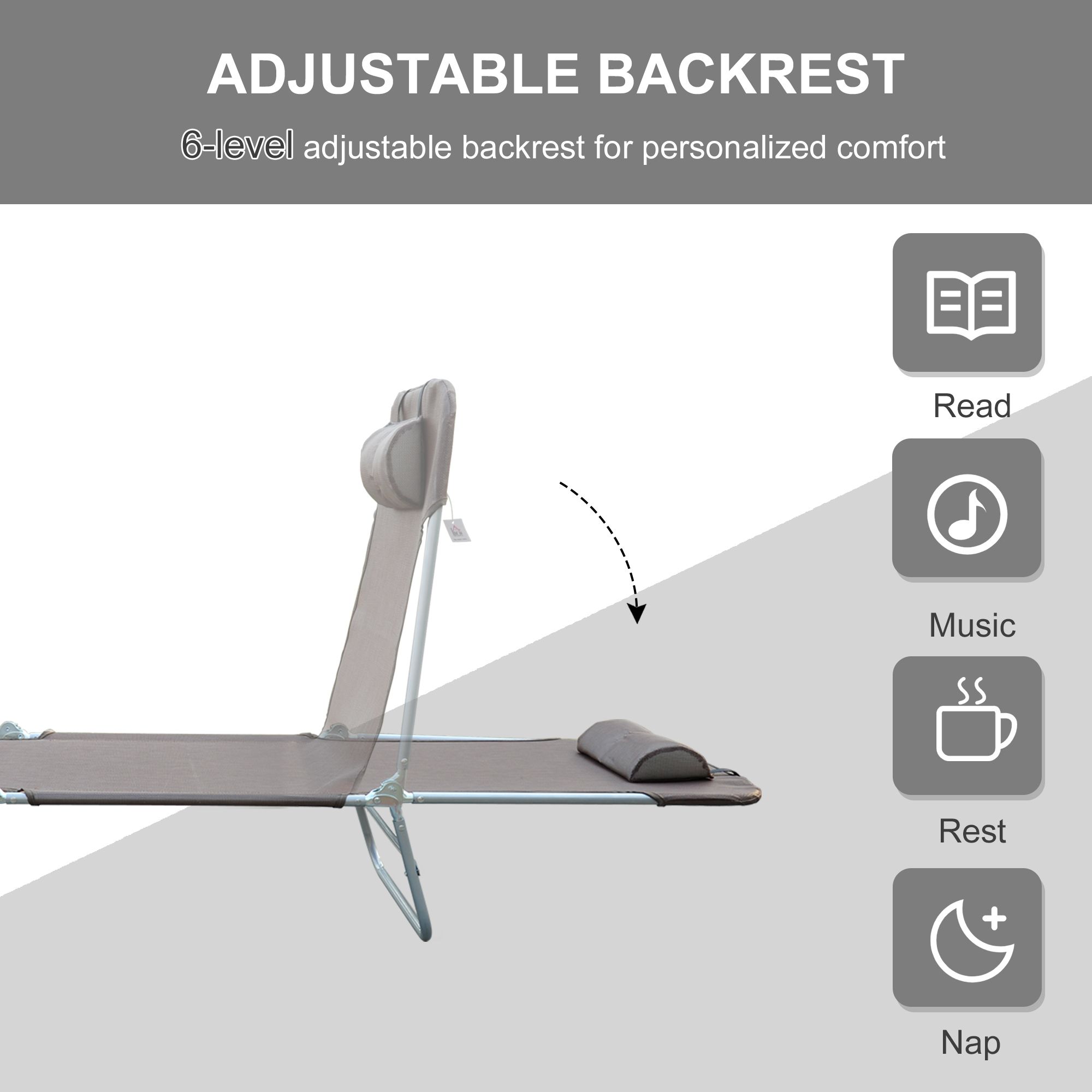 - ADJUSTABLE BACK: The garden sun lounger has an adjustable backrest with head pillow allows you to choose a level of personalized comfort. Pick your favorite and stick with it or adjust your position throughout the day, adjusts from 0-180°