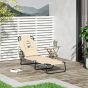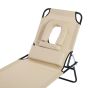 Sun Lounger Foldable Reclining Chair with Pillow and Reading Hole Garden Beach Outdoor Recliner Adjustable Beige