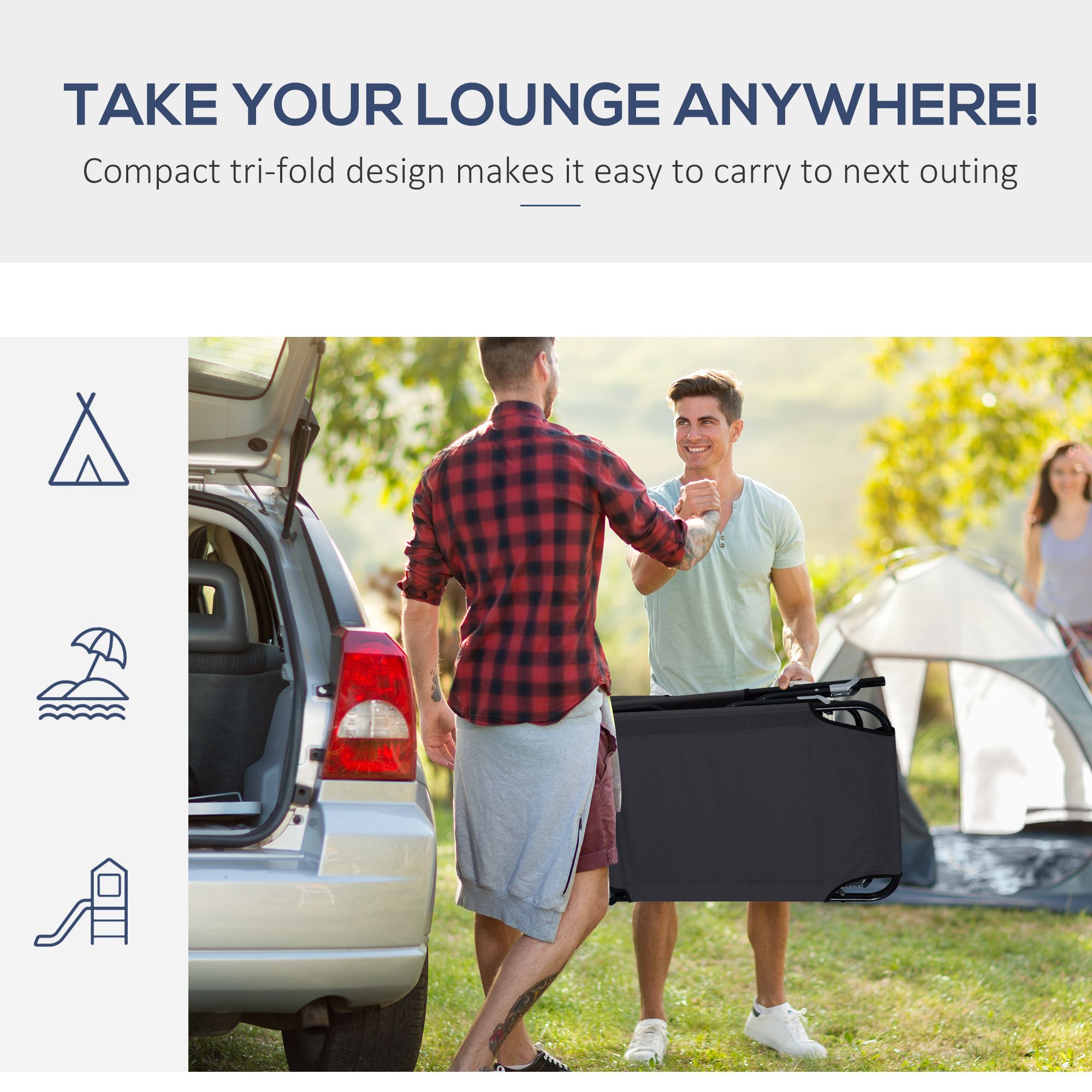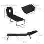 Sun Lounger Foldable Reclining Chair with Pillow and Reading Hole Garden Beach Outdoor Recliner Adjustable Black