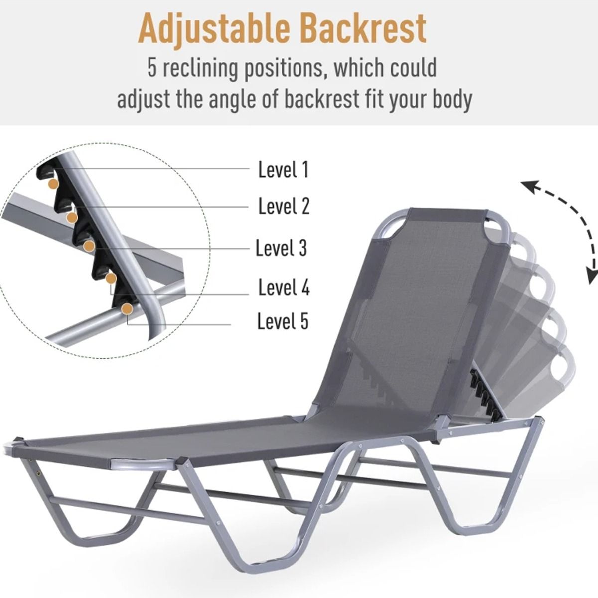 Sun Lounger Relaxer Recliner with 5 Position Adjustable Backrest - Silver