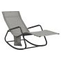 This sun lounger offers you a perfect place to relax and enjoy your leisure time. The garden lounger features a steel frame, which makes it stable and durable. Thanks to the water-resistant and breathable Textilene fabric, the lounger is hard-wearing, easy to maintain and suitable for daily outdoor use. The rocking chair is designed with a curved backrest and armrests to provide you with optimal seating comfort. Additionally, you can put your mobile phones, magazines, and other small items in the included side pocket. Note: In order to extend the life of your outdoor furniture, we recommend you to clean it regularly and do not leave it outdoors without protection unnecessarily.Clean: Use a mild soap solution.Storing: If possible, store in a cool, dry place indoors. If the product is stored outdoors, protect it with a waterproof cover. Wipe and dry the excess water or snow from flat surfaces after a rain or snowfall. Allow sufficient air circulation to avoid moisture-related damage.