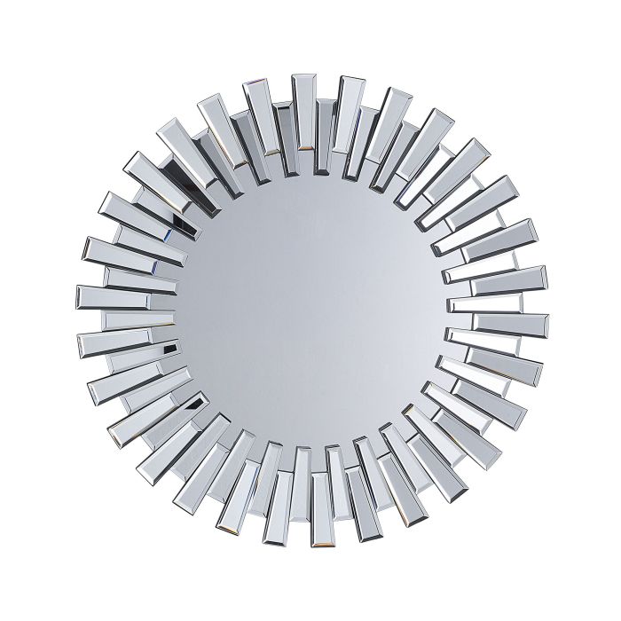 An ideal balance of elegance and glamour is featured in this piece. This modern take on a classic, sunburst pattern is exactly what will complement any glam up and contemporary interior. Its silver, glossy frame is made from reflective pieces directed to the centre of the mirror so that it resembles the Sun. It will certainly become the focal point of any room and open it up at the same time. Details: Color: Silver. Main material: MDF. Additional material: Glass. Weight: 9 Assembly: Does Not Require Assembly