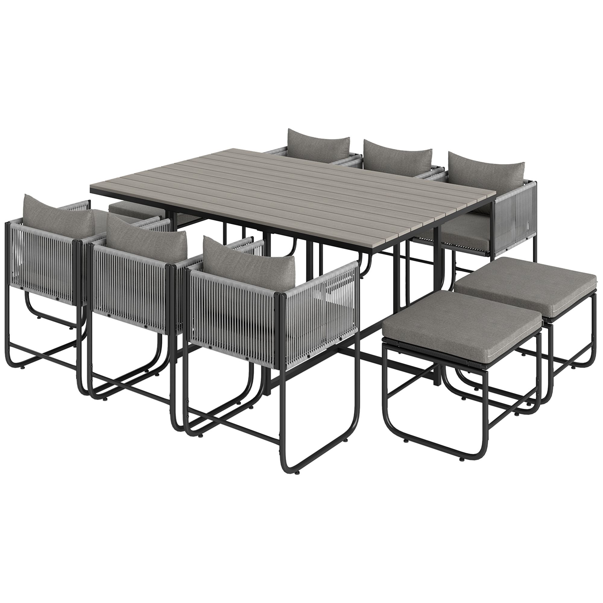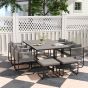 SUNVISTA 10-Seater Rattan Cube Dining Set, Outdoor Furniture with Cushions & Wood Grain Table, Grey
