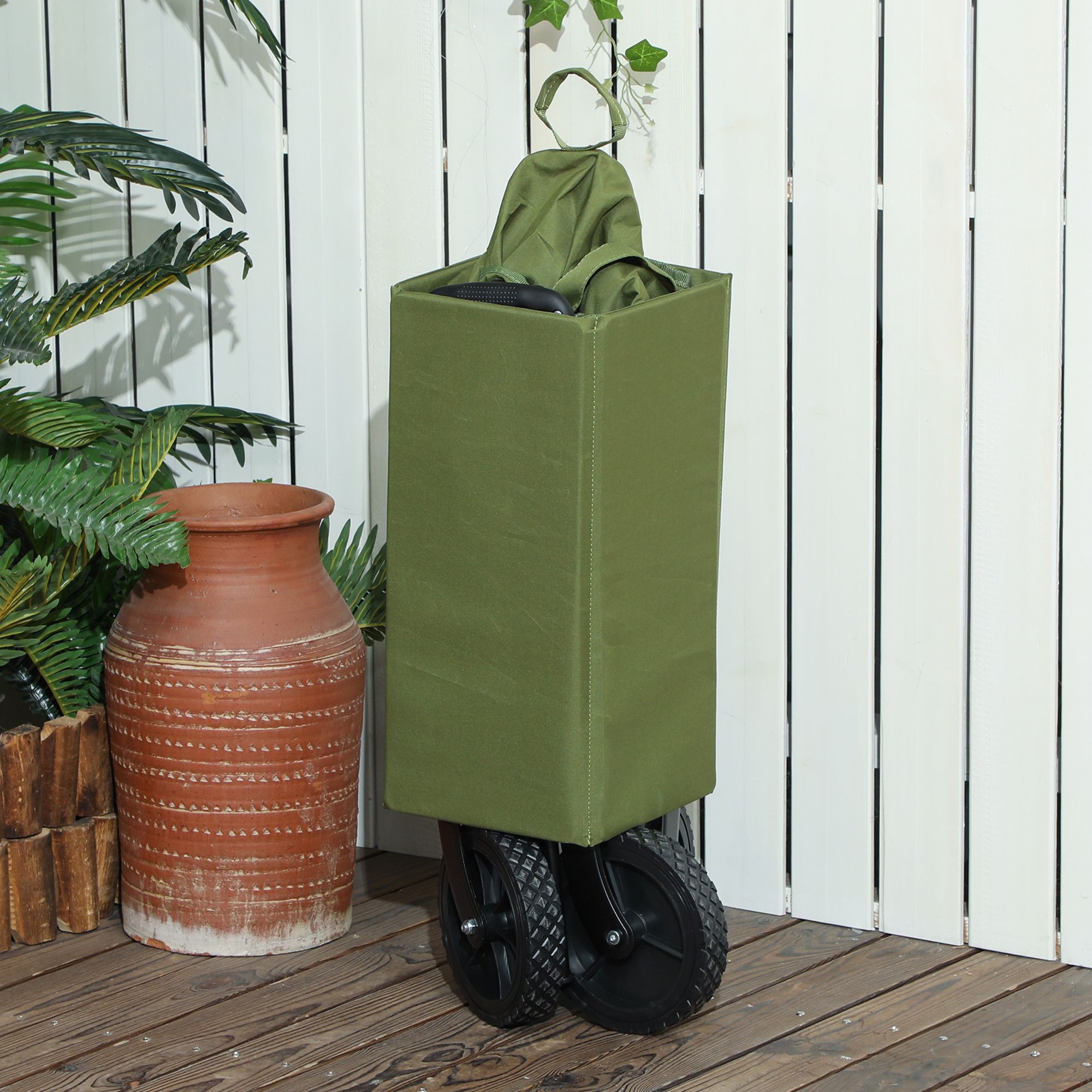 SUNVISTA 120L Folding Garden Trolley Cart, Outdoor Collapsible Wagon with Wheels and Adjustable Handle for Beach, Camping, Festival, Green