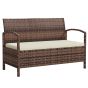 This SUNVISTA garden bench comes in a 2-in-1 design: a two-seater rattan bench and a garden storage box. The garden storage seat has a galvanised and powder coated, steel frame for a strong core, wrapped in stylish and tough rattan wicker. The 125L inner storage provides plenty of room to keep garden accessories stored together. Complete with a soft cushion to relax comfortably.
