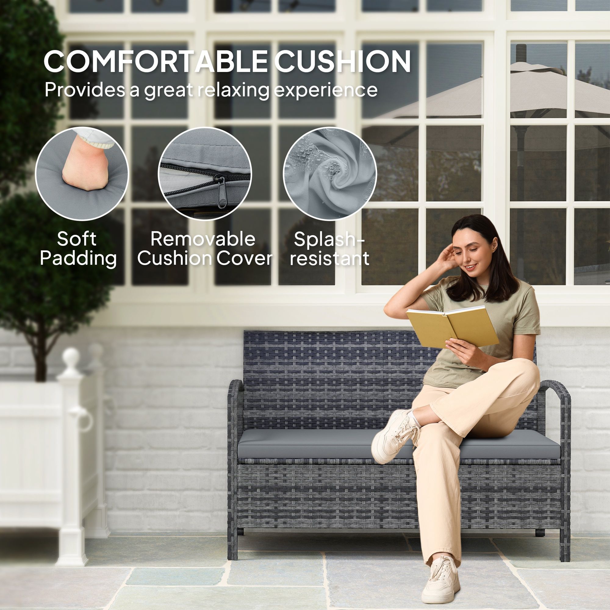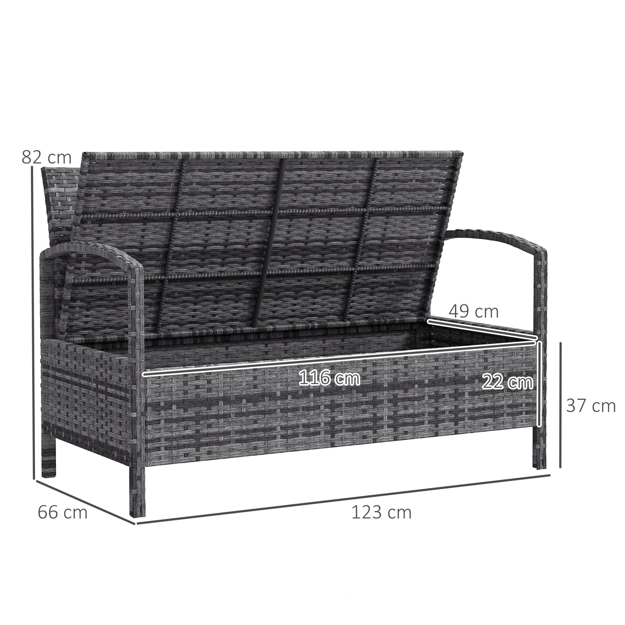 This SUNVISTA garden bench comes in a 2-in-1 design: a two-seater rattan bench and a garden storage box. The garden storage seat has a galvanised and powder coated, steel frame for a strong core, wrapped in stylish and tough rattan wicker. The 125L inner storage provides plenty of room to keep garden accessories stored together. Complete with a soft cushion to relax comfortably.
