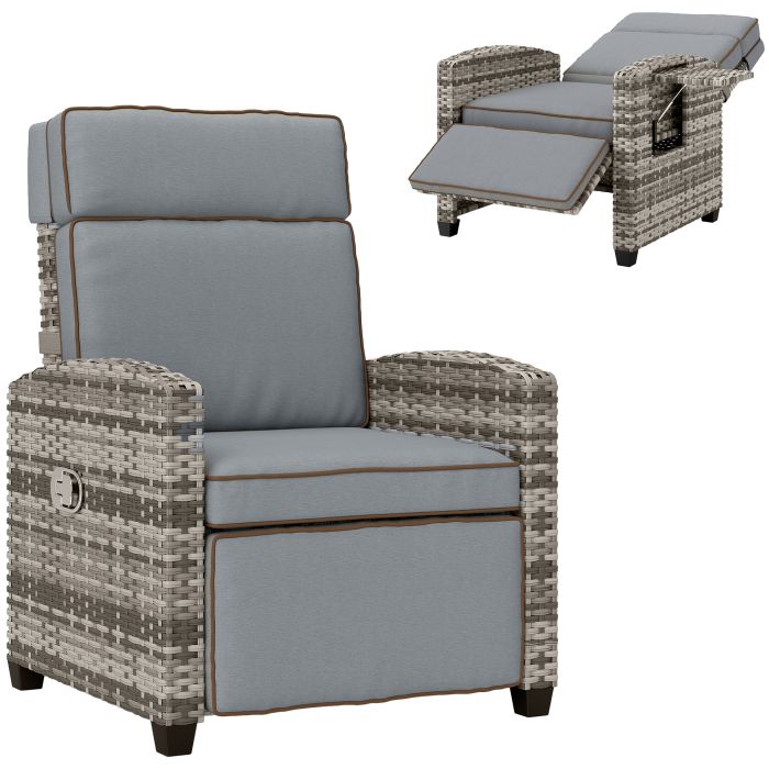 SUNVISTA 145degree Reclining Rattan Armchair, with Footrest - Mixed Grey/Grey