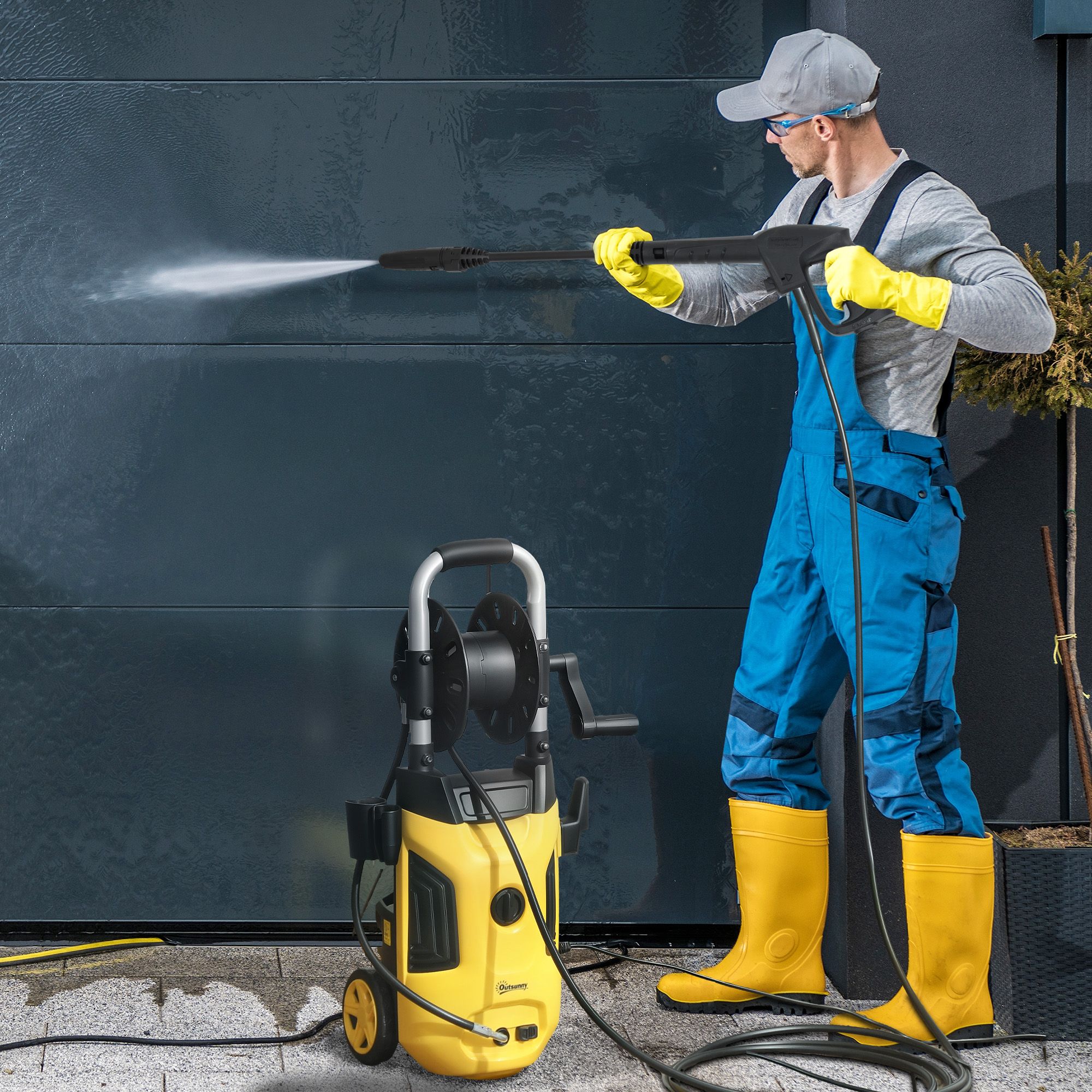 SUNVISTA 1800W Pressure Washer with Hose Reel, 150 Bar, 420L/h Flow, Power Jet Cleaner - Yellow