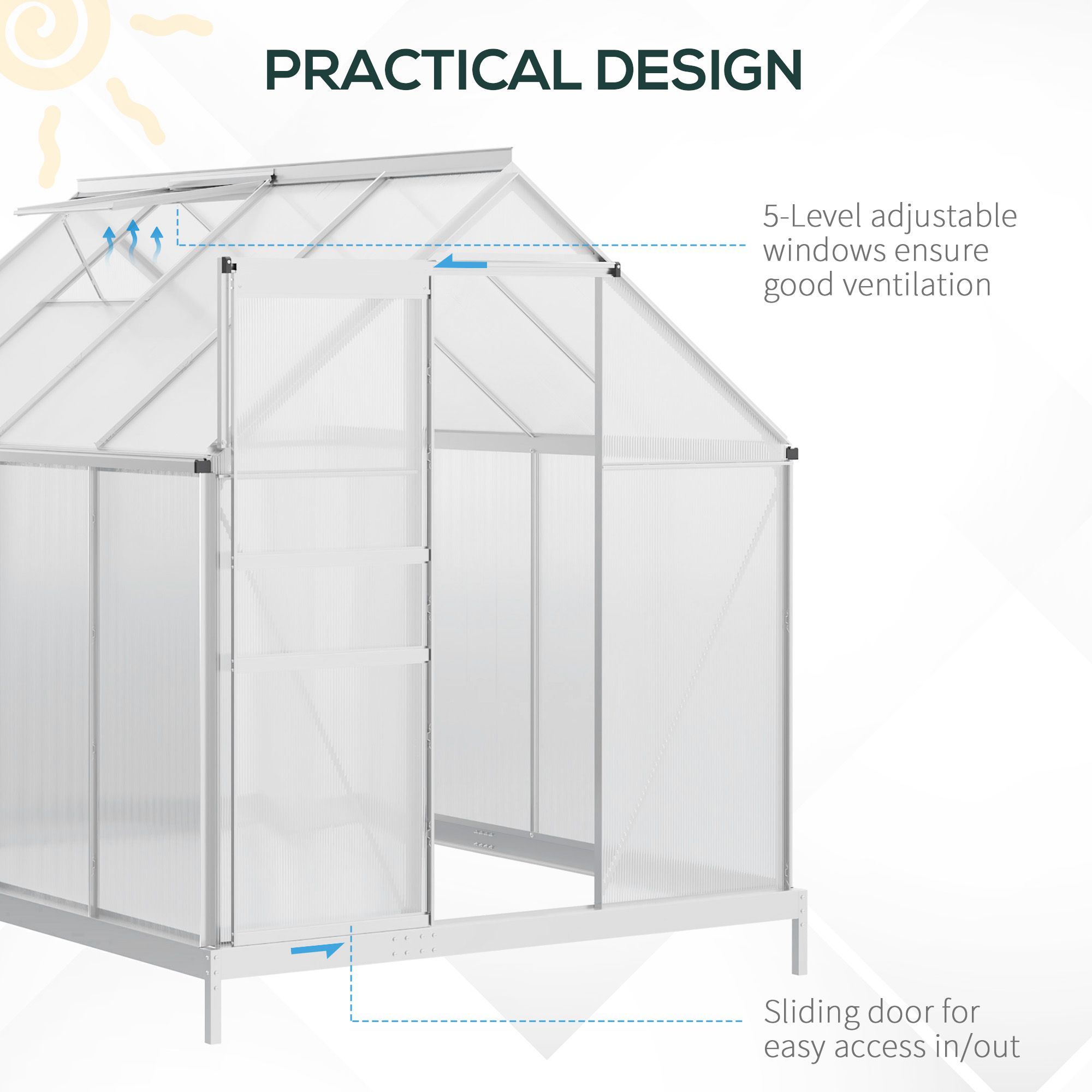 SUNVISTA 190x253 cm Walk In Polycarbonate Greenhouse - Silver Tone