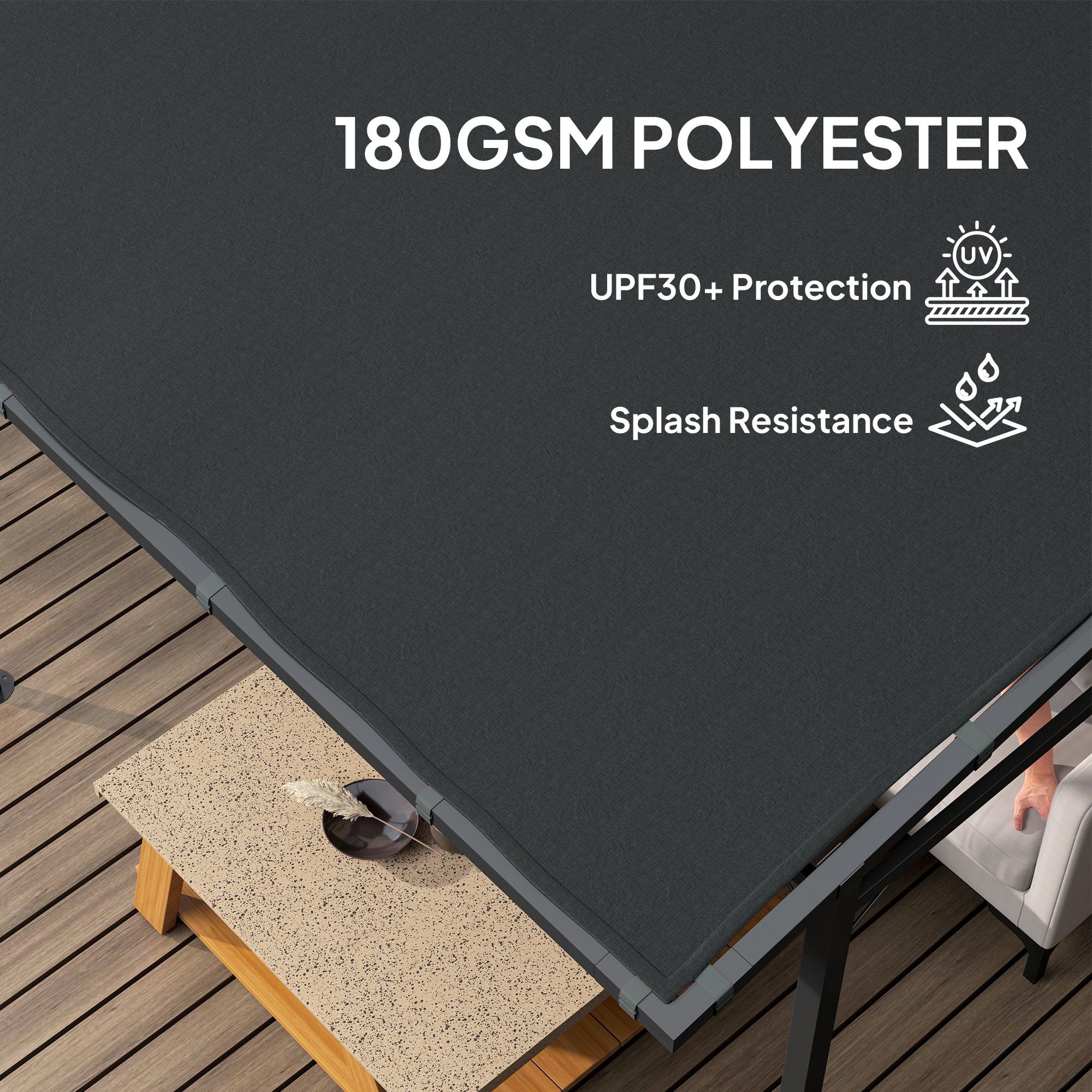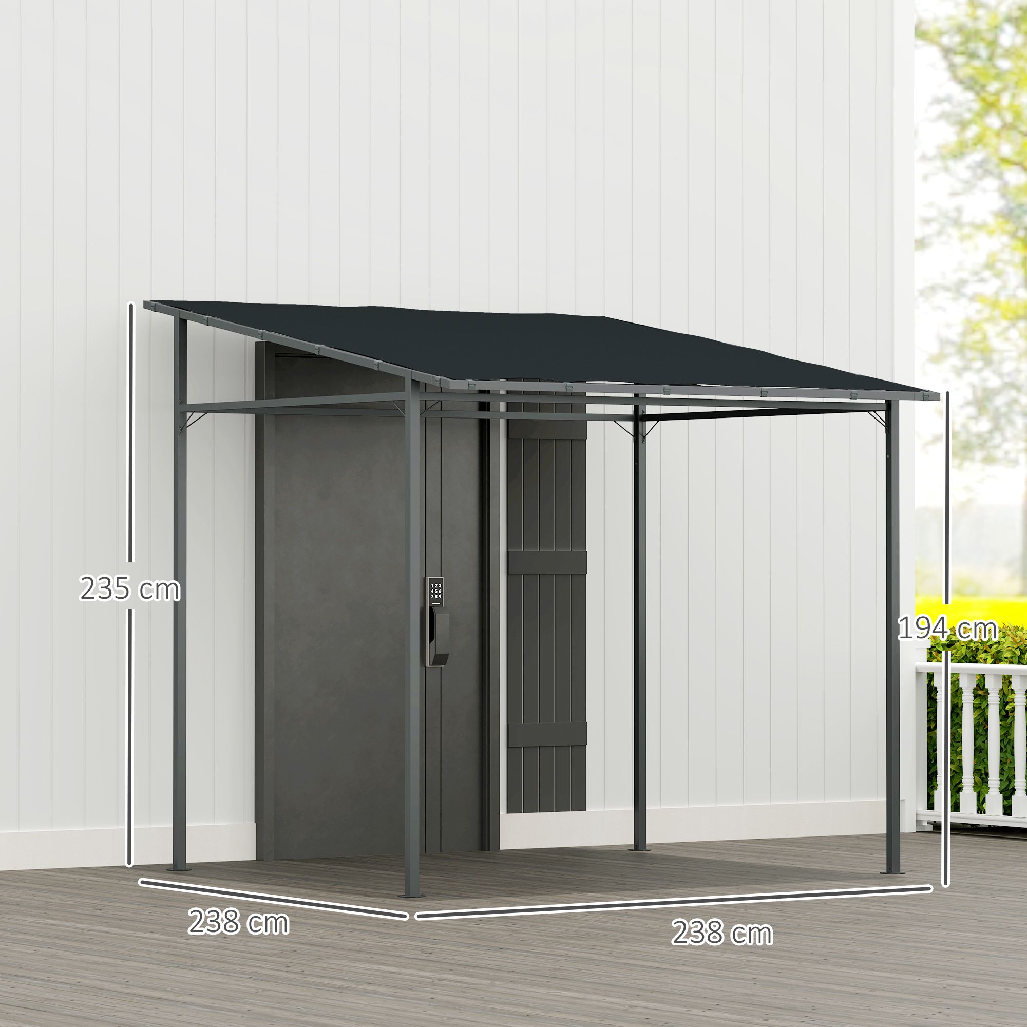 SUNVISTA 2.4x2.4m Wall Mounted Pergola Gazebo with Metal Frame & PA-Coated Canopy, Wind-Resistant, Dark Grey