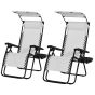 SUNVISTA 2 Piece Foldable Reclining Garden Chair with Headrest, Zero Gravity Deck Sun Lounger Seat Chair with Footrest, White