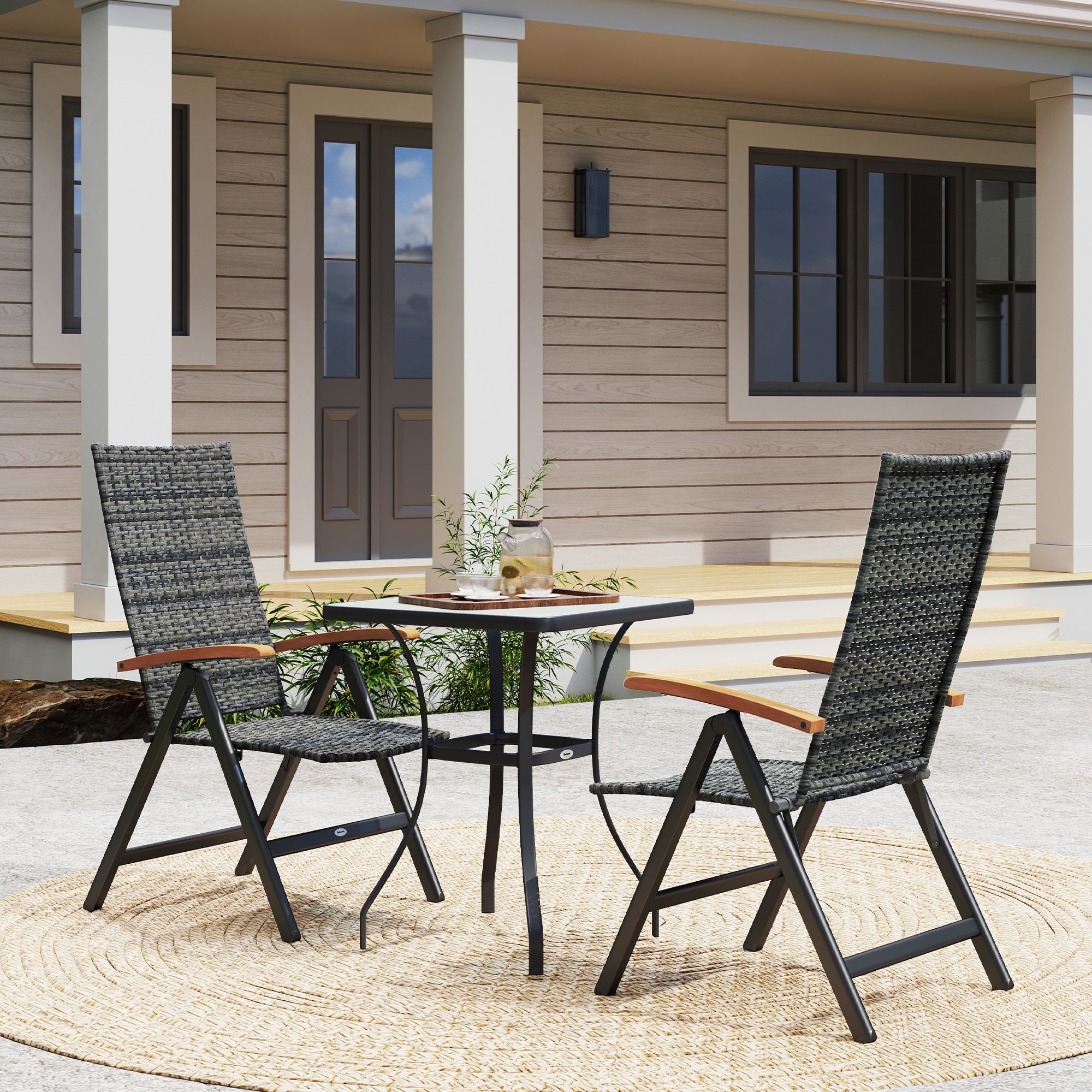 SUNVISTA 2 Pieces Outdoor Foldable Dining Chair with Armrests, High Backrest, for Garden, Camping, Balcony, Mixed-grey