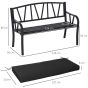 SUNVISTA 2-Seater Garden Bench with Cushion, Metal Loveseat, Slatted Outdoor Park Chair with Decorative Backrest and Armrest, Black