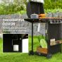 SUNVISTA 3+1 Burner Gas BBQ Grill, Built-in Thermometer, Side Table, Wheels, Outdoor Cooking, Black