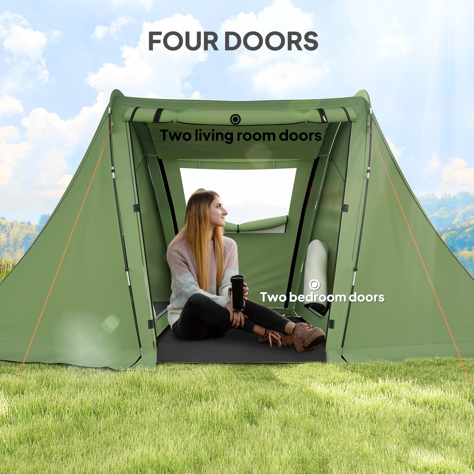 SUNVISTA 3 Man Camping Tent with Living Room, 2 Bedrooms, Waterproof 3000mm, Groundsheet - Green