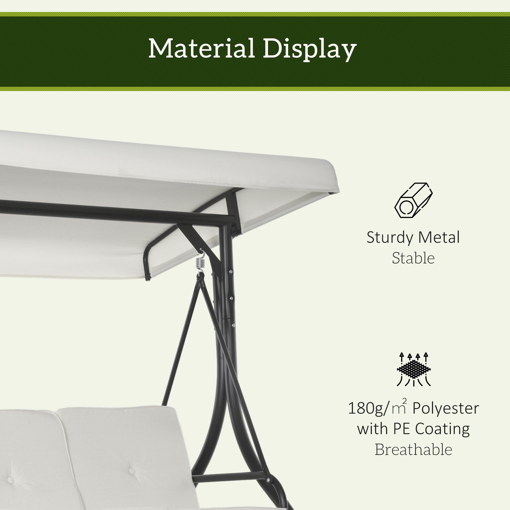 SUNVISTA 3 Seater Canopy Swing Chair, 2 in 1 Garden Swing Seat Bed, with Adjustable Canopy and Metal Frame, Cream White