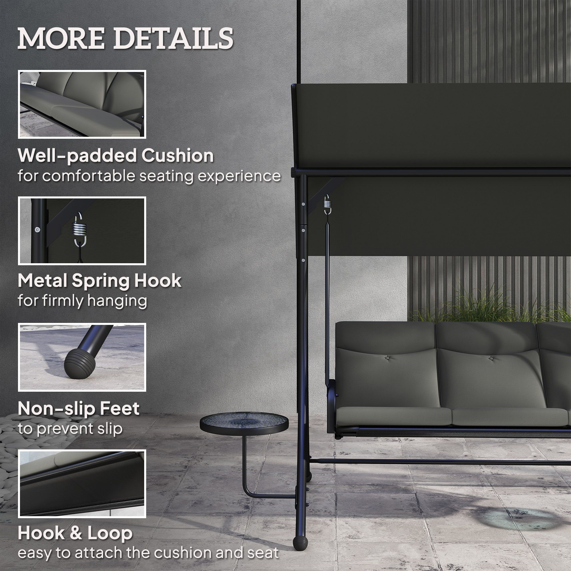 Item Includes: 1 x 3-Seat Patio Swing Chair, 1 x Manual