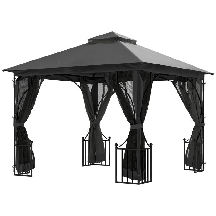 SUNVISTA 3 x 3(m) Garden Gazebo Patio Party Tent Shelter Outdoor Canopy Double Tier Sun Shade Metal Frame Netting, Dark Grey
