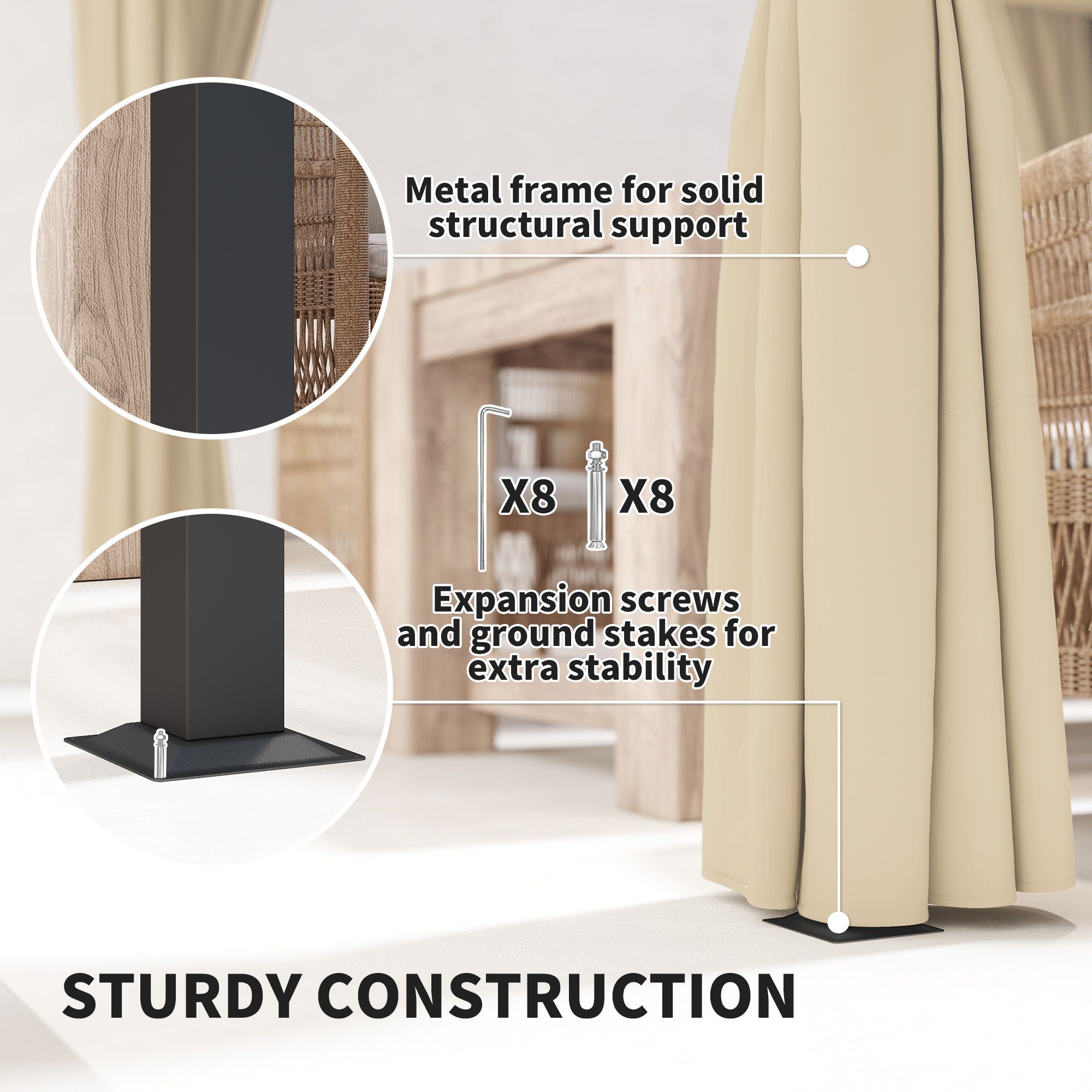 SUNVISTA 3 x 3m Retractable Roof Pergola, with Curtains - Khaki