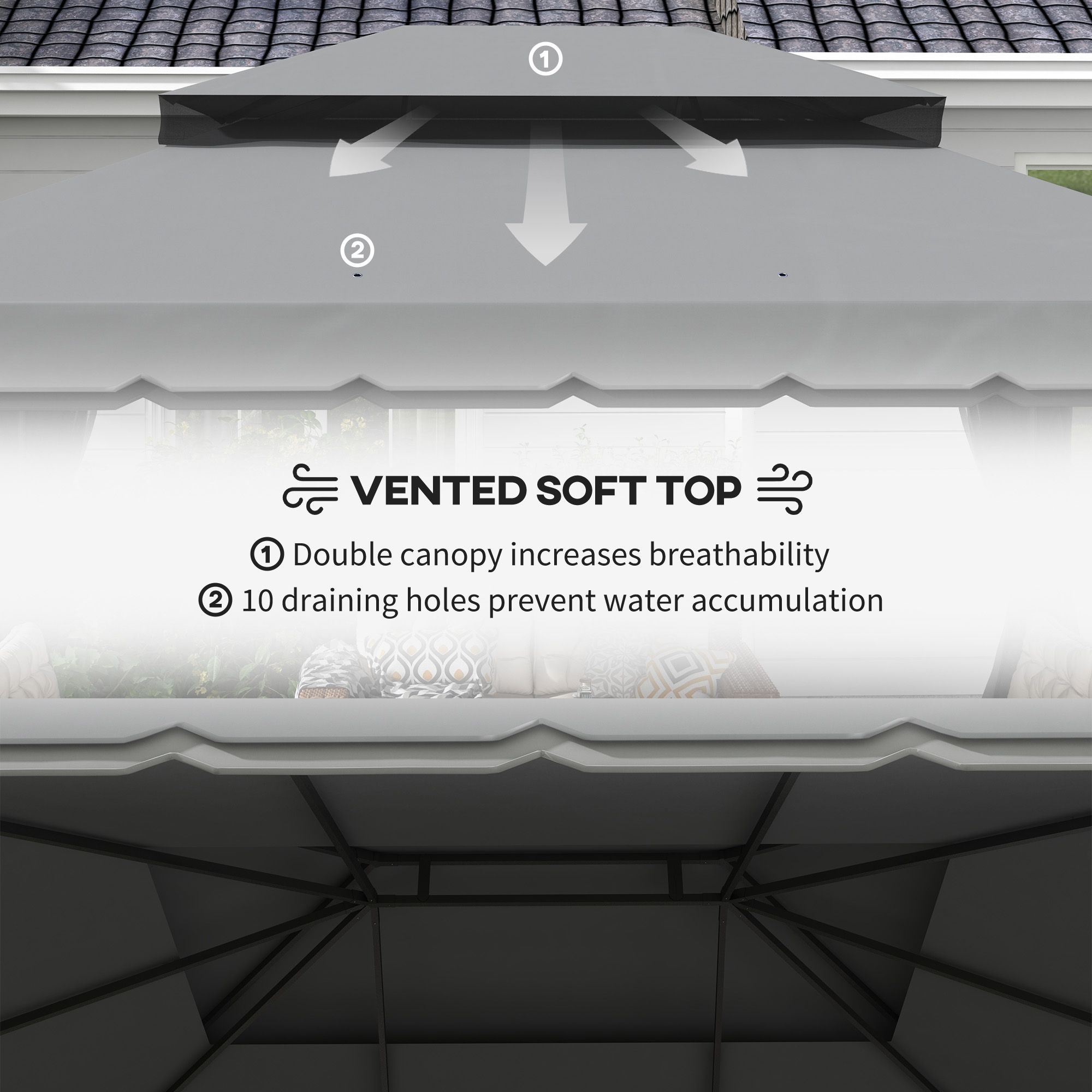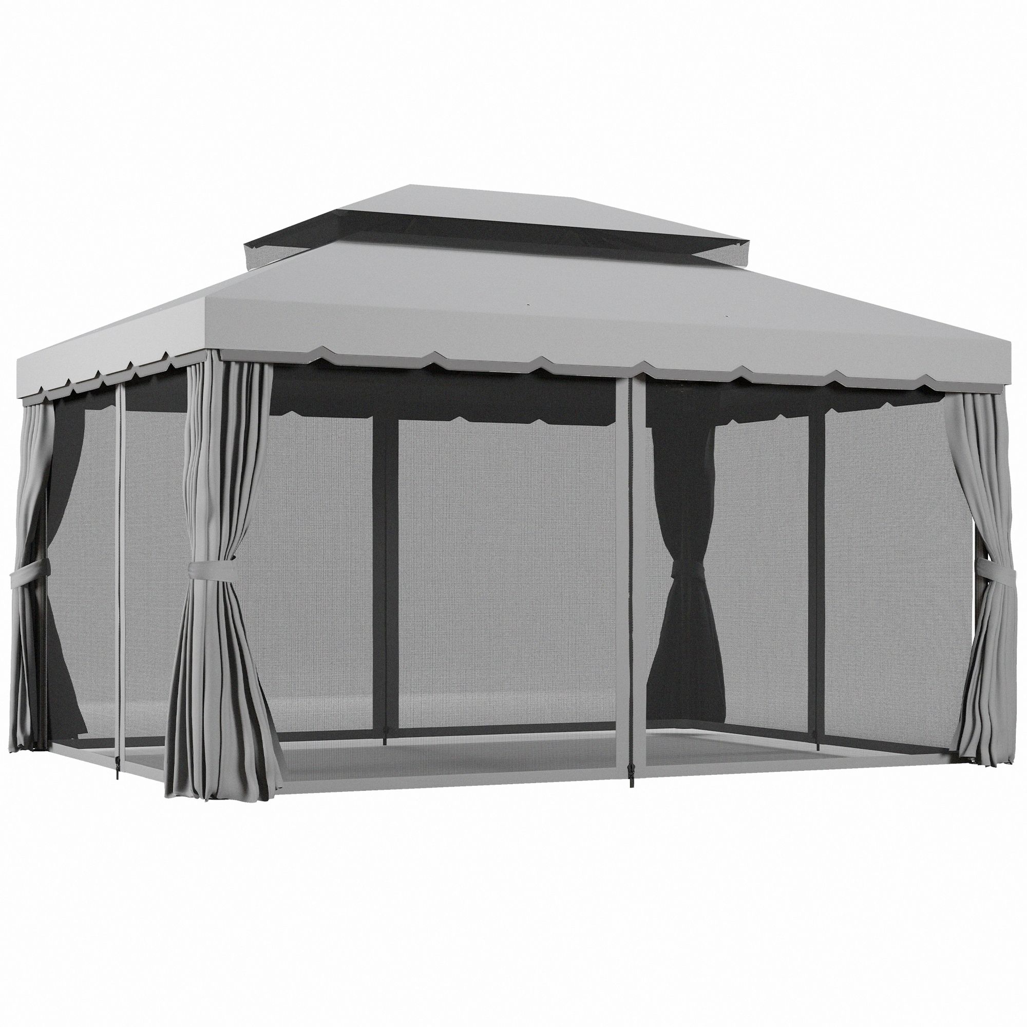 SUNVISTA 3 x 4m Aluminium Garden Gazebo, Marquee Canopy Shelter Pavilion Party Tent with Nets and Curtains for Garden and Deck, Light Grey