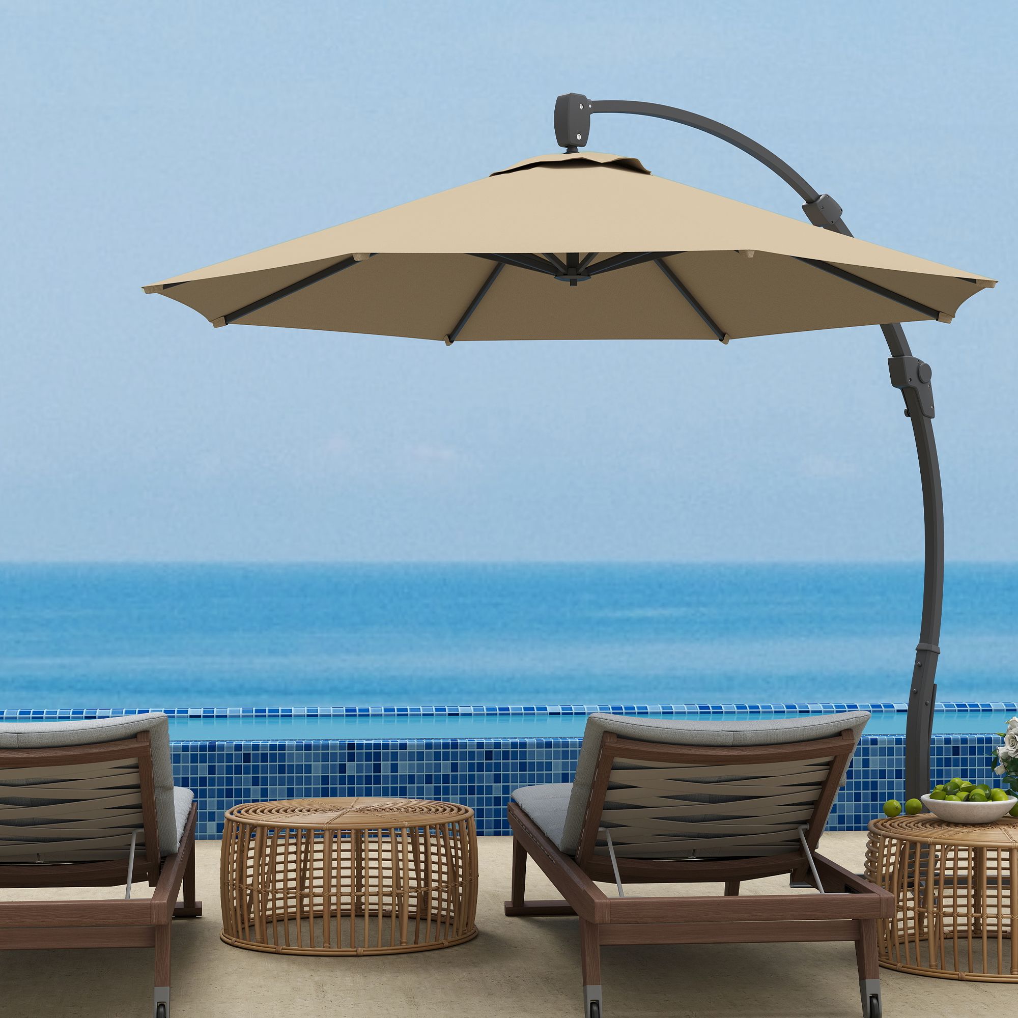 SUNVISTA 3m Cantilever Parasol with Crank, Cross Base, Aluminium Frame, 360° Rotation - Khaki