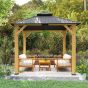 SUNVISTA 3x(3)M Outdoor Hardtop Gazebo Canopy with 2-Tier Roof and Solid Wood Frame, Outdoor Patio Shelter for Patio, Garden, Grey