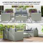 SUNVISTA 4 Piece Rattan Garden Furniture Set 4 Seater Wicker Outdoor Sofa Light Grey