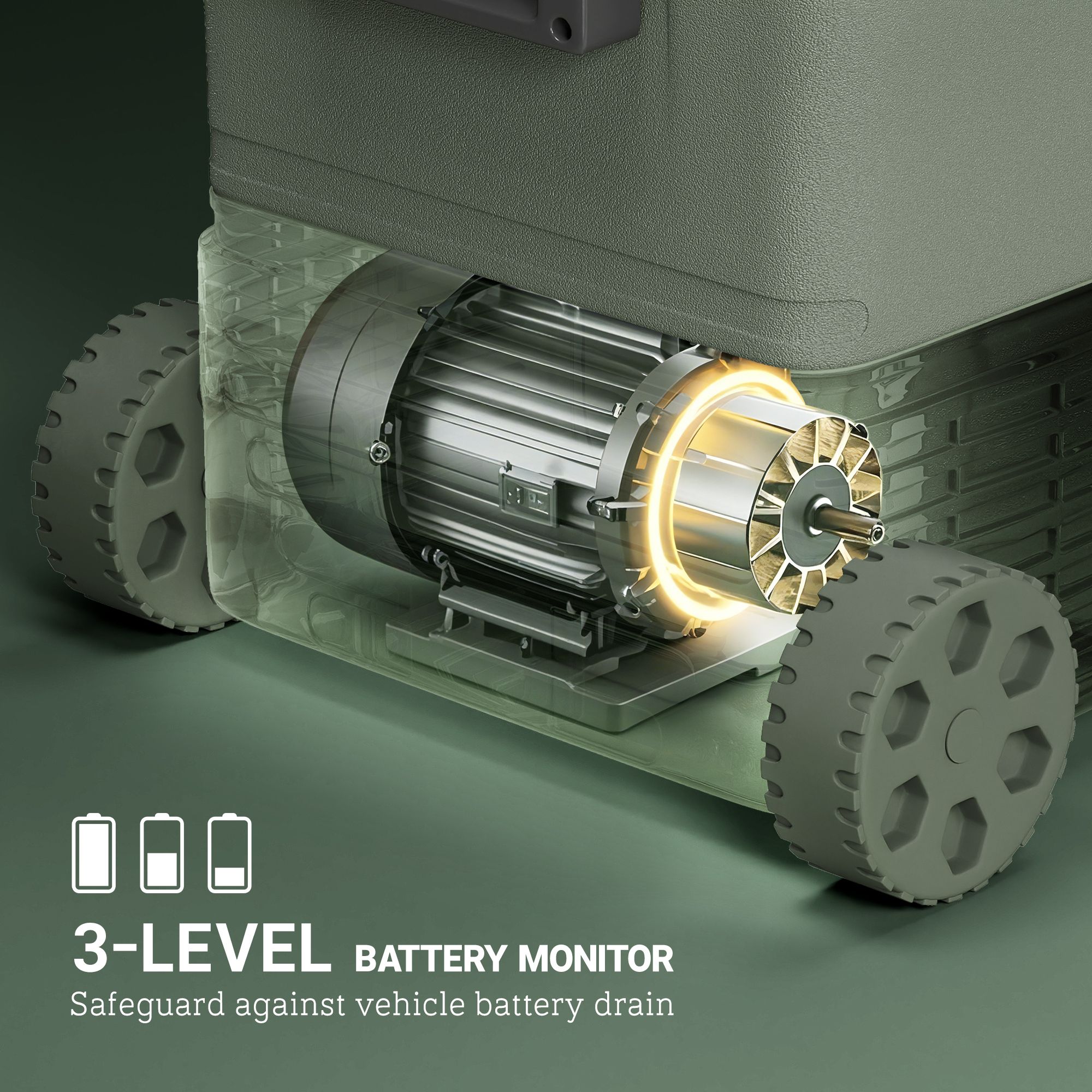 SUNVISTA 45L Dual Zone Camping Fridge Freezer, 12V/24V Portable Electric Cool Box with Wheels, Green