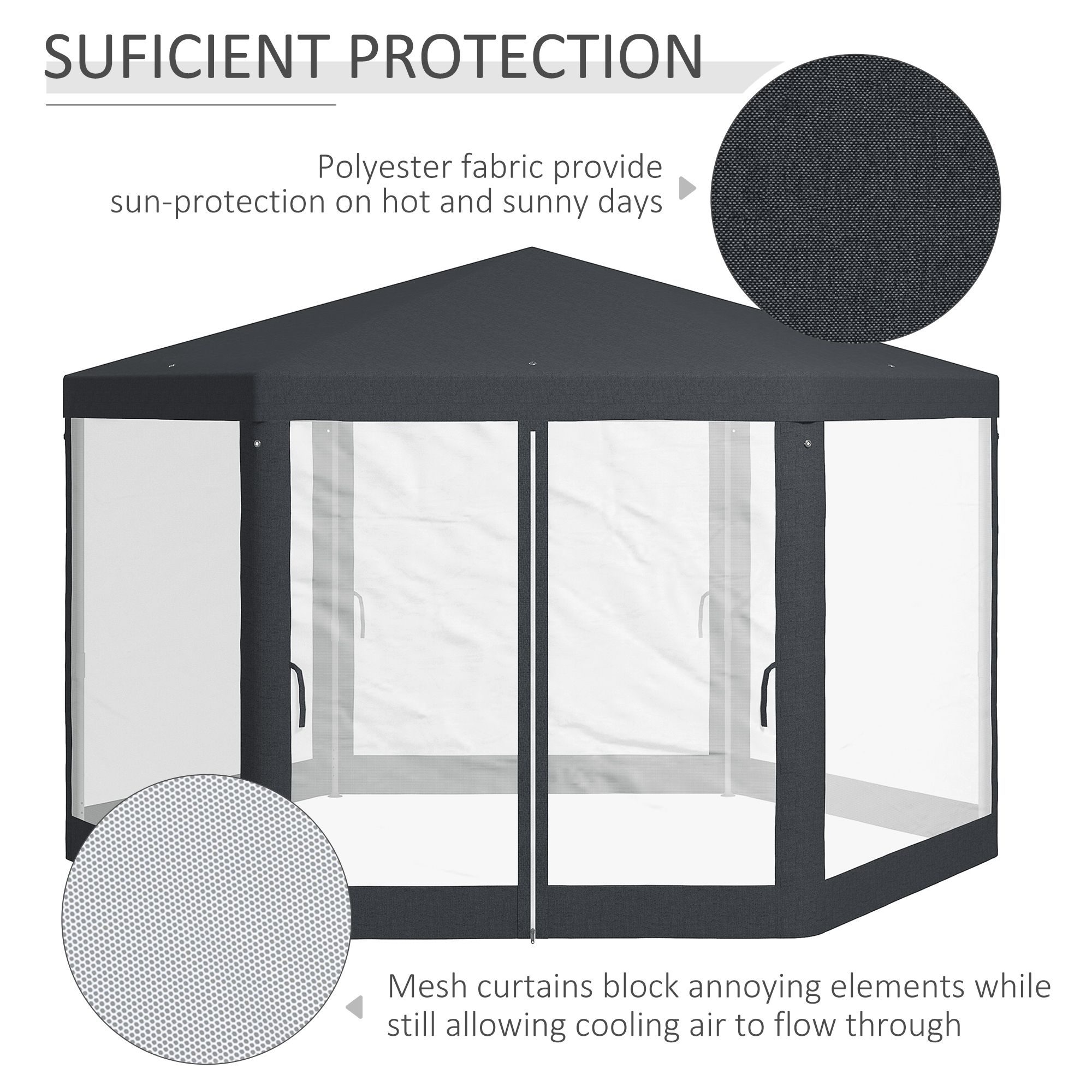 SUNVISTA 4M Hexagon Gazebo, Netting Party Tent, Patio Canopy Outdoor Event Shelter for Activities, Shade Resistant, Dark Grey