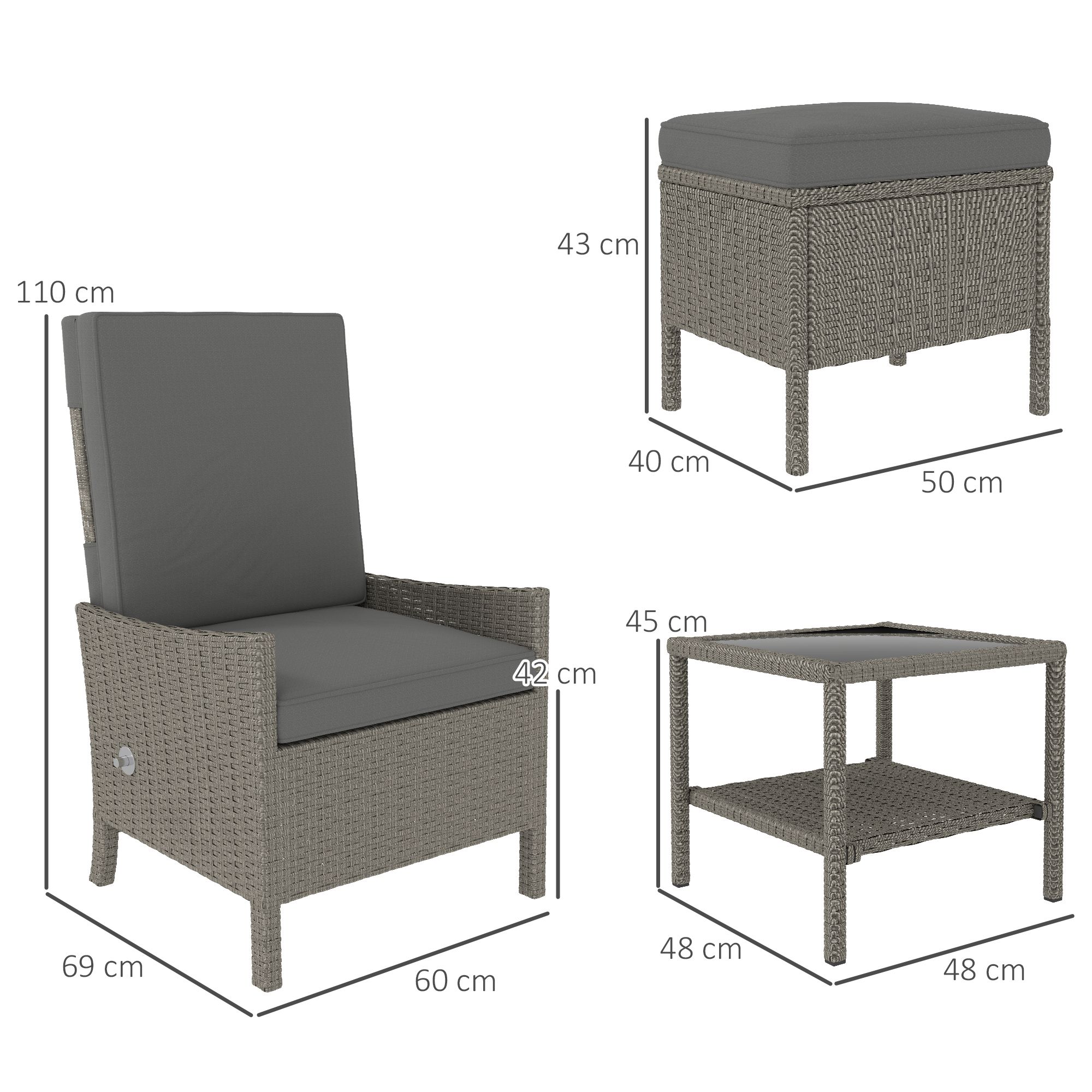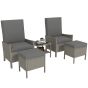 SUNVISTA 5-Piece Rattan Patio Set, 2 Armchairs, 2 Footstools, Glass Table, Cushions & Adjustable Backs, Dark Grey