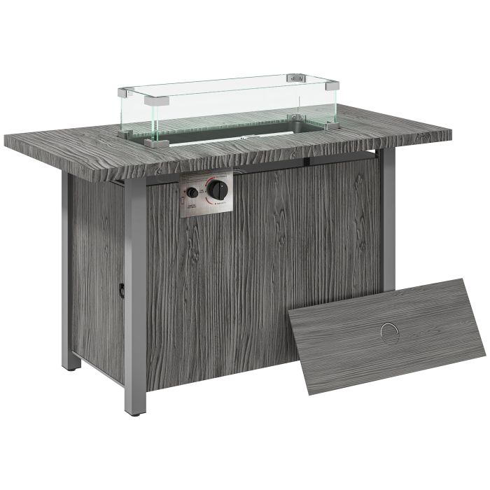 SUNVISTA 50000 BTU Gas Fire Pit Table with Cover Glass Screen Dark Grey