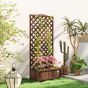 SUNVISTA 53L Garden Wooden Planter Box with Trellis Free Standing Flower Raised Bed with Lattice for Climbing Plants, 76cm x 36cm x 170cm, Dark Brown