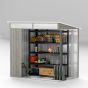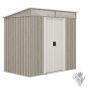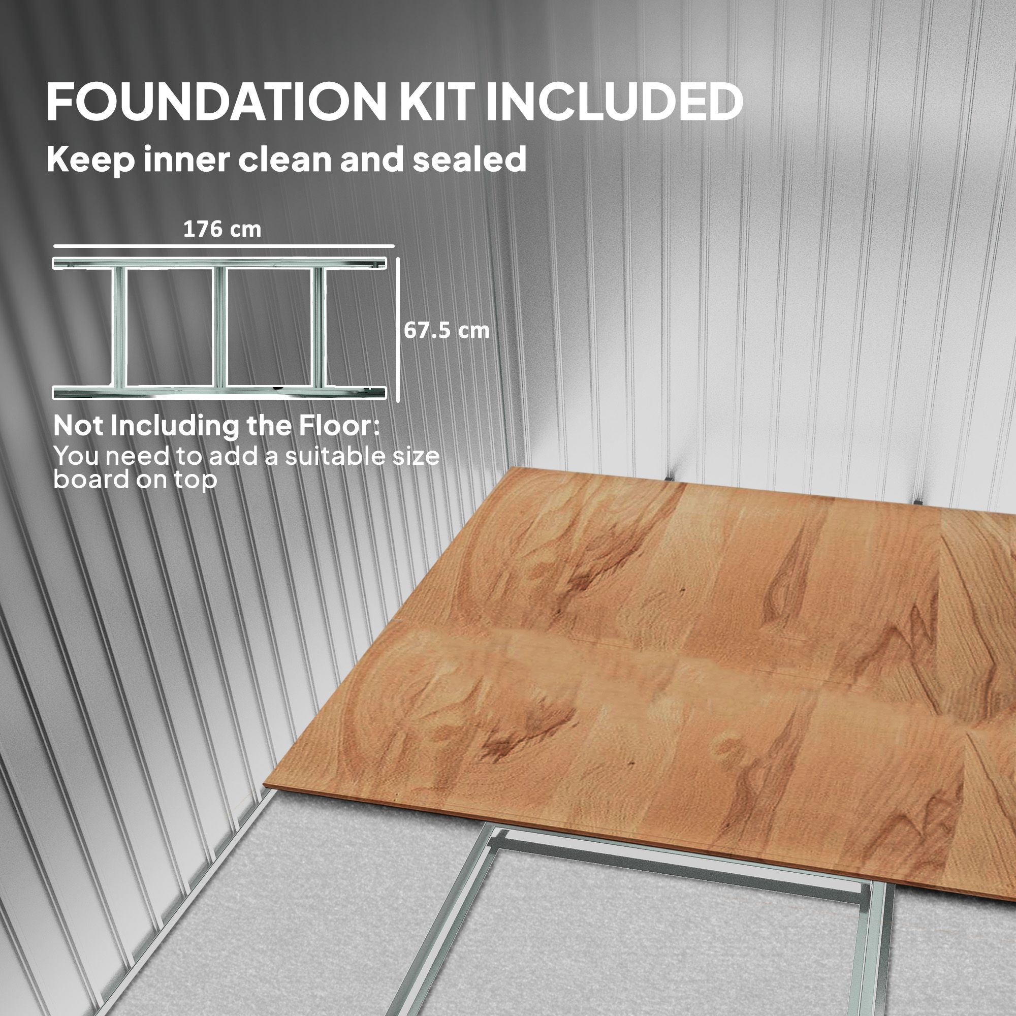 SUNVISTA 6.5 x 4FT Galvanised Metal Shed with Foundation Kit, Lockable Tool Garden Shed with Double Sliding Doors, Vents, Light Grey Wood Effect
