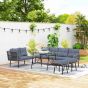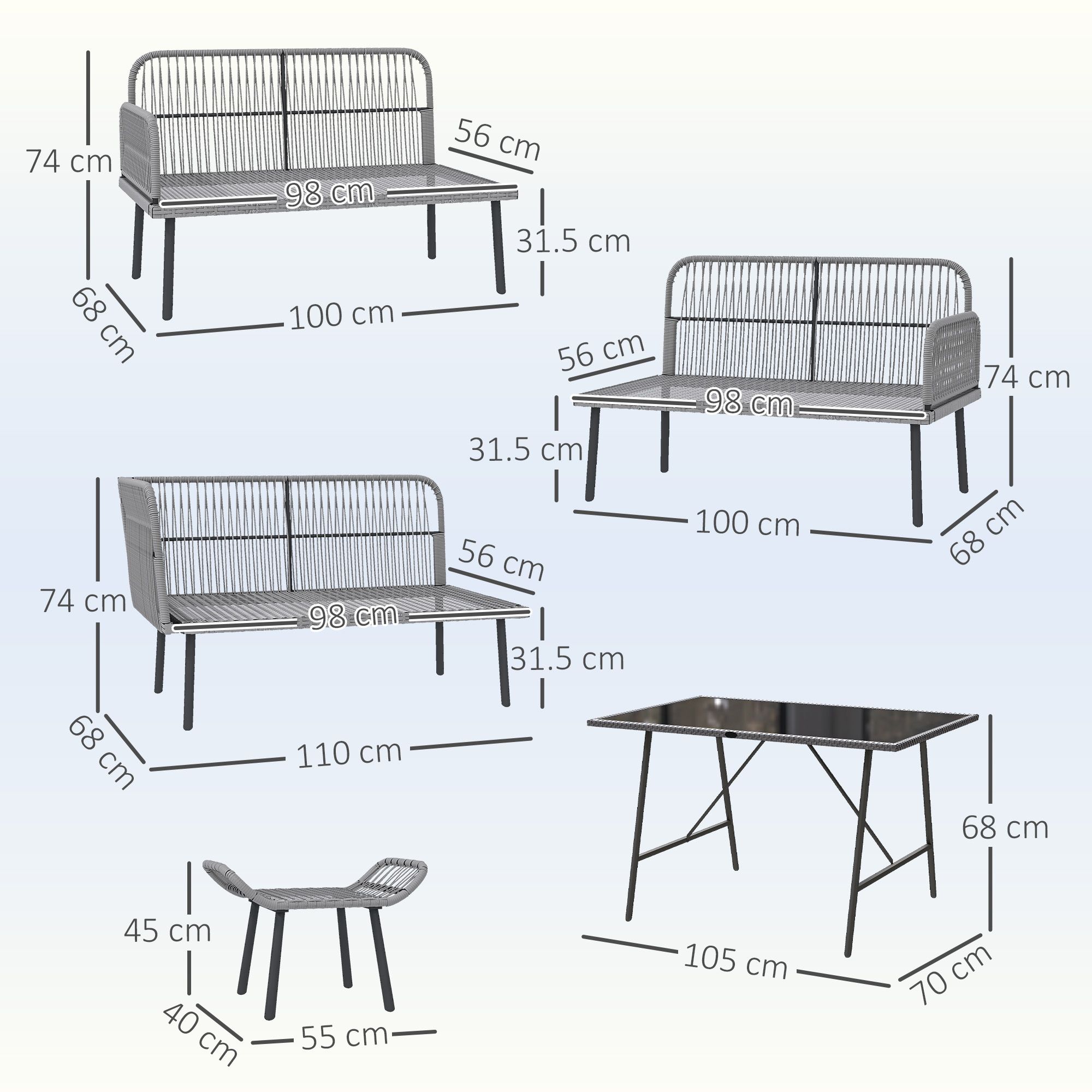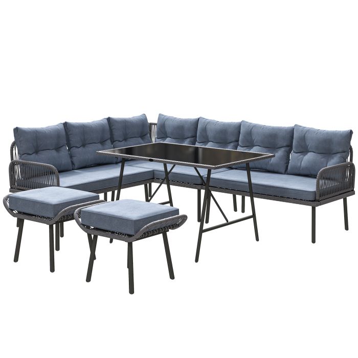 SUNVISTA 6-Piece Rattan Garden Set, 8-Seater Corner Sofa with Cushions & Glass Table, Outdoor Conservatory Set, Charcoal Grey