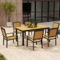 SUNVISTA 6 Seater Garden Dining Set with Stackable Chairs, Aluminium Frame, Rectangular Plastic Top, Garden Furniture Set, Nature Wood