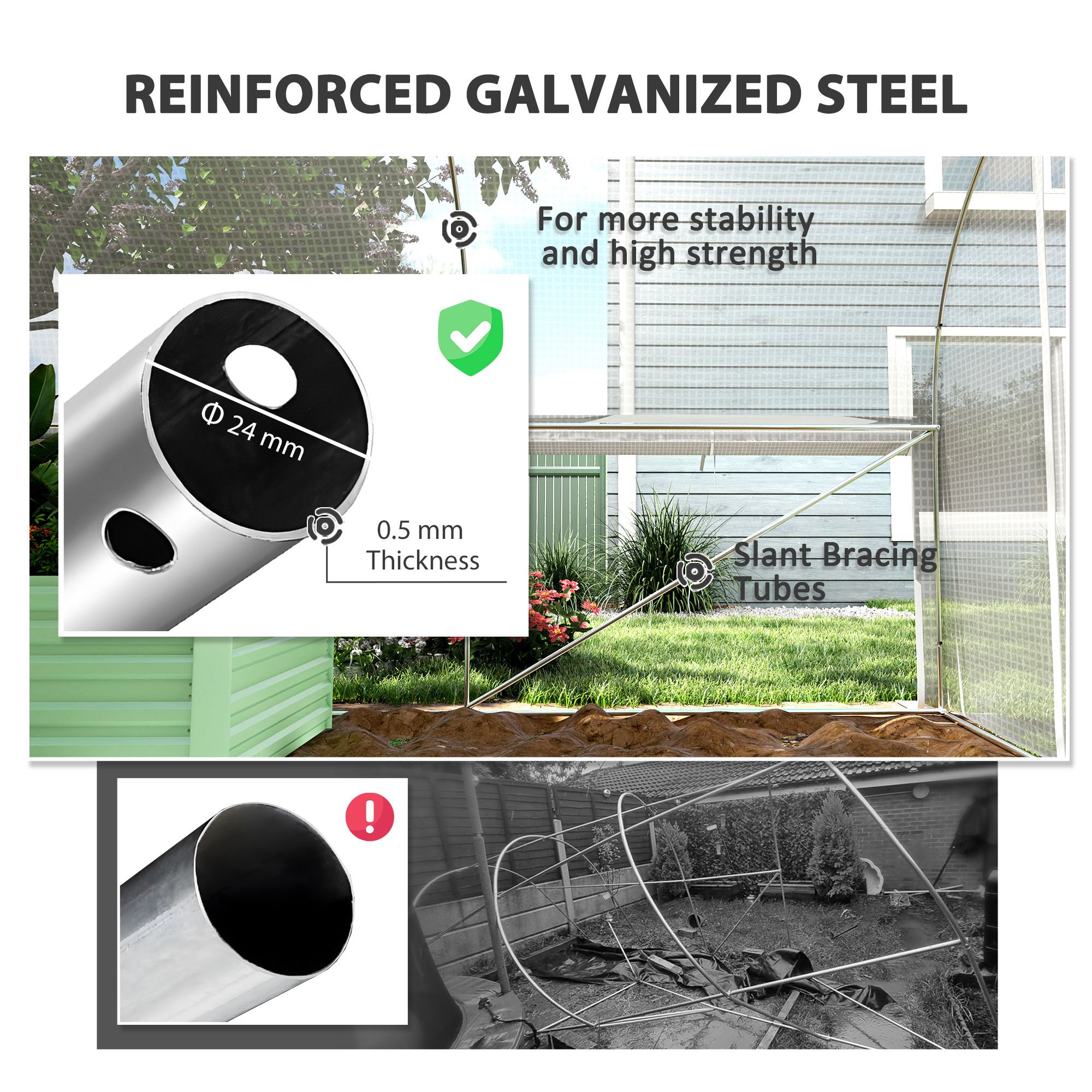 SUNVISTA 6 x 3 x 2m Walk-in Polytunnel Greenhouse, Zipped Roll Up Sidewalls, Mesh Door, 8 Mesh Windows, White