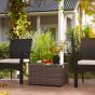 Forever style for your garden with this SUNVISTA rattan garden table. A galvanised steel frame with powder coating for a strong core structure; wrapped in tough plastic rattan, the garden side table effortlessly matches your current rattan garden furniture. It's fitted with a 5mm thick tempered top for a sleek touch and a safe holding place. Complete with adjustable feet for stability.